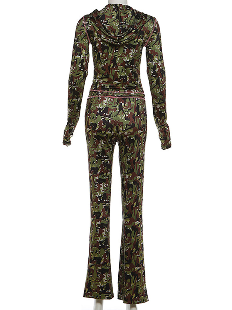 # Casual Camo Hooded Cropped Top And Pants Sets Elevate your inventory with this versatile two-piece set featuring a camouflage design that appeals to trend-conscious customers. The hooded cropped top offers a modern silhouette perfect for layering, while the coordinating pants provide comfortable everyday wear. Ideal for wholesale buyers seeking affordable, on-trend pieces that deliver strong profit margins. The casual aesthetic works across multiple seasons and customer demographics, making it a reliable addition to any apparel collection. Quality construction ensures durability through repeated wear and washing, supporting customer satisfaction and repeat purchases.