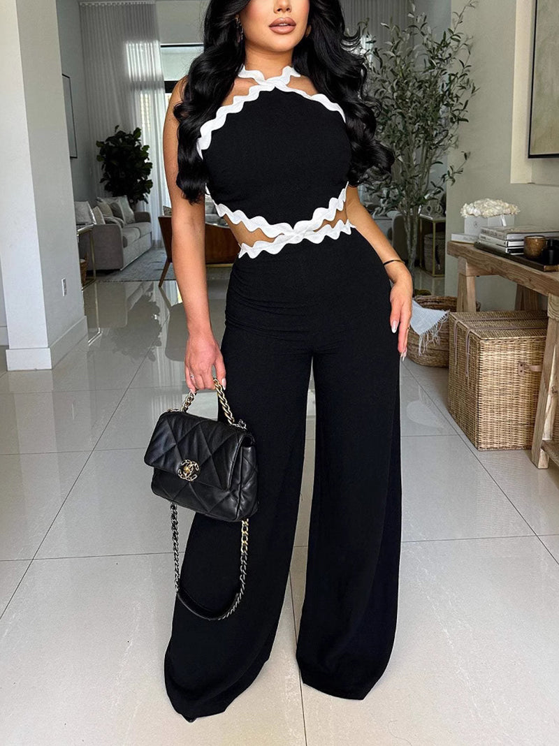 Fashion Backless Lace-up Wide Leg Jumpsuit