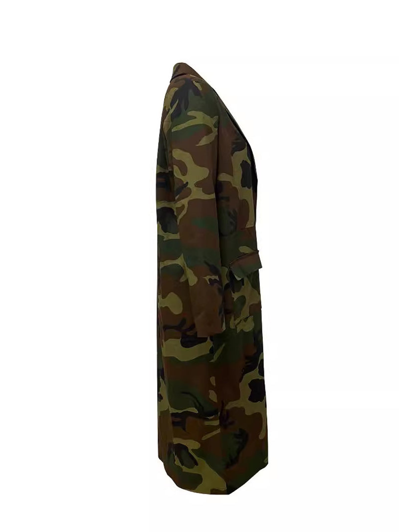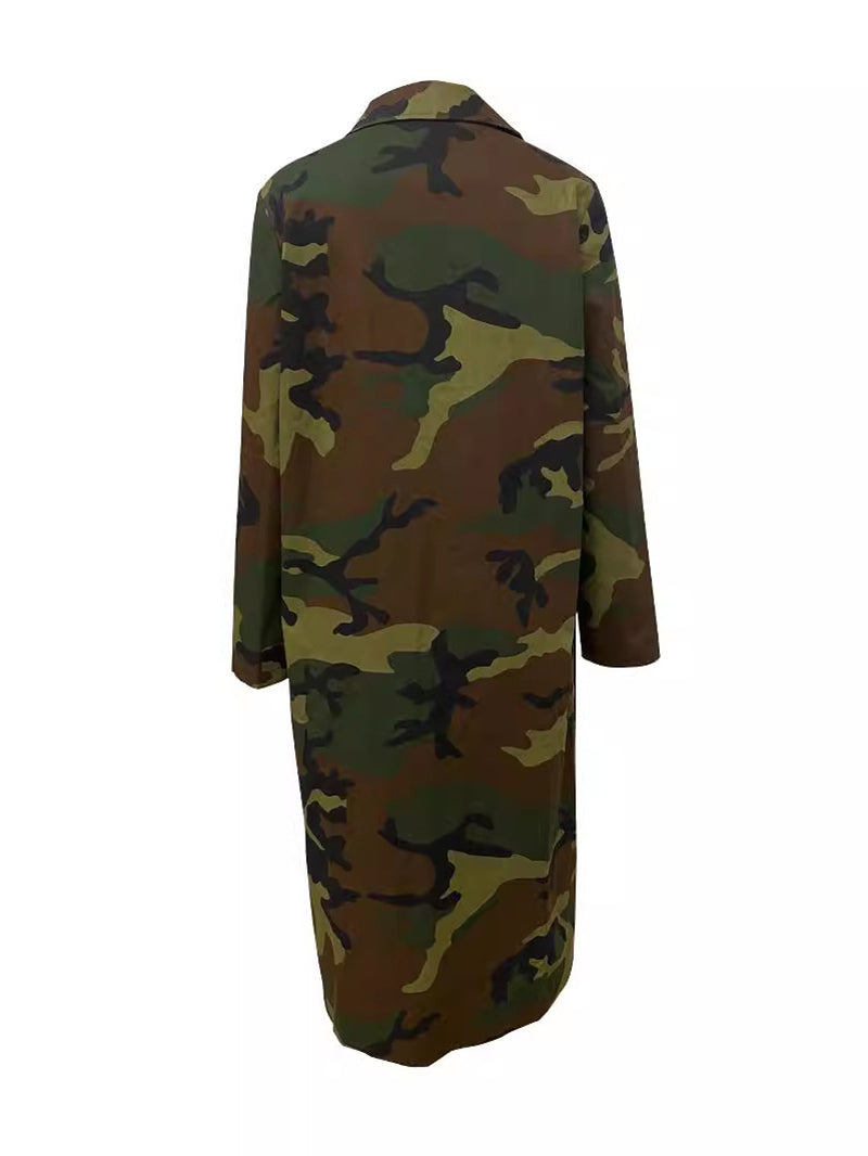 Fashion Camouflage Print Trench Denim Coat This versatile denim trench combines classic tailoring with bold camouflage detailing for a contemporary edge. Crafted from durable denim fabric, it features a structured trench silhouette with functional pockets and adjustable belting. The camouflage print adds visual interest while maintaining a professional aesthetic suitable for layering. Perfect for wholesale buyers seeking statement pieces that appeal to fashion-forward customers. Ideal for spring and fall collections, this coat transitions seamlessly from casual to elevated styling.