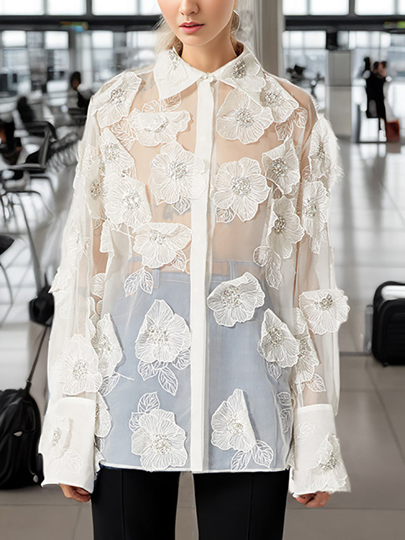 Upgrade your wardrobe with our Fashion Embroider See through Shirt. Made with exquisite craftsmanship, this shirt exudes elegance and sophistication. With its delicate embroidery and sheer fabric, it's the perfect blend of style and grace. Elevate your look and make a statement with this high-quality, refined piece.