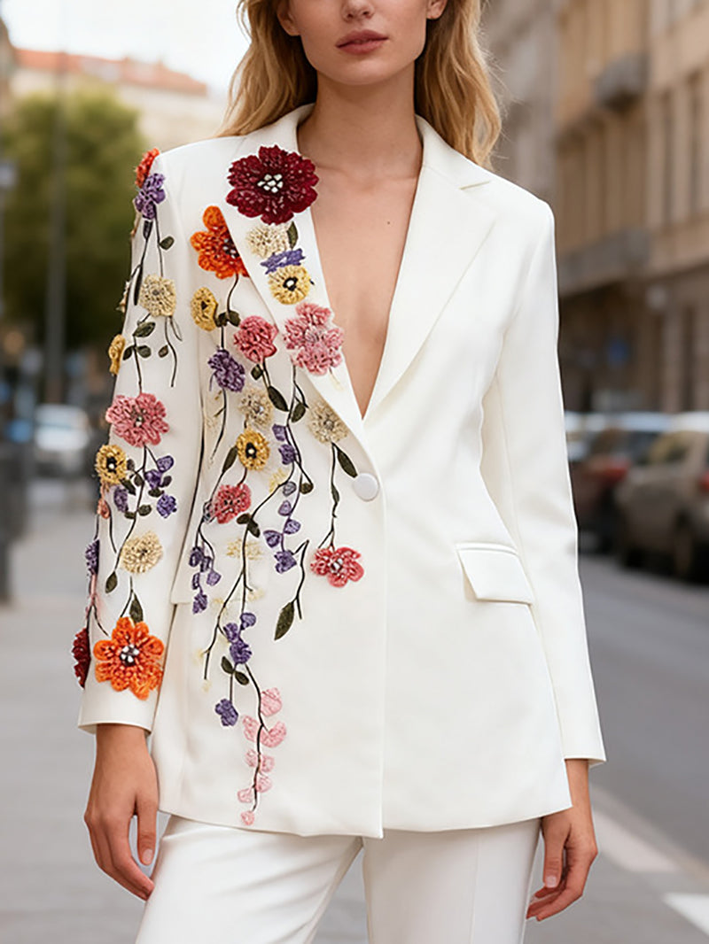 # Fashion Embroidered Applique Slim Blazer Elevate your wholesale collection with this sophisticated slim blazer featuring intricate embroidered appliqué detailing. Tailored for a modern silhouette, this piece combines contemporary design with refined craftsmanship. The embroidered accents add visual interest and premium appeal, making it an ideal choice for retailers seeking standout pieces. Perfect for customers looking to upgrade their professional or casual wardrobe with a statement jacket that balances style and versatility. Quality construction ensures durability for repeat customers.