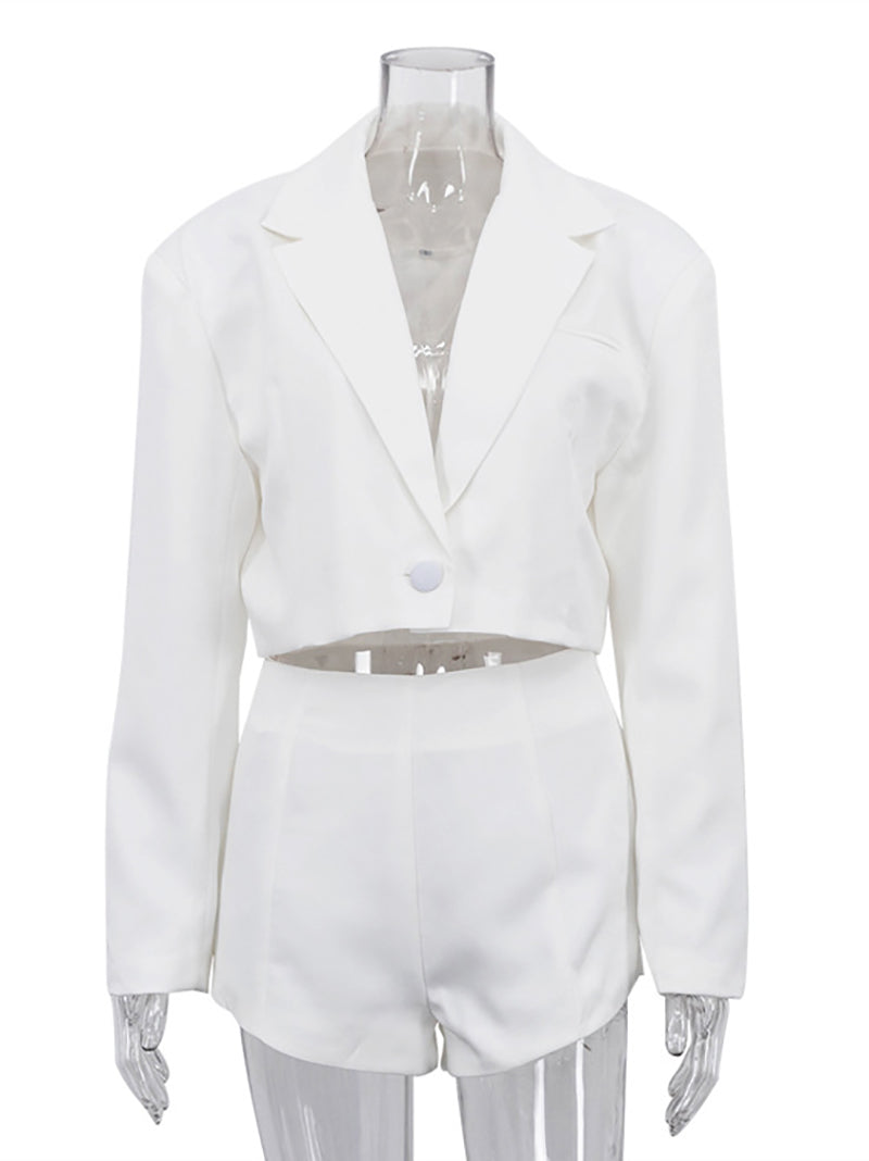 # Fashion Folded Collar Cropped Blazer Shorts Sets Elevate your wholesale inventory with this versatile two-piece set featuring a tailored cropped blazer with a distinctive folded collar and coordinating shorts. The structured blazer delivers a polished, contemporary silhouette perfect for both casual and semi-formal occasions, while the matching shorts provide comfortable versatility. Crafted with quality construction, this set appeals to fashion-forward retailers seeking statement pieces that combine style with wearability. Ideal for bulk orders, this ensemble offers excellent margin potential and strong customer appeal across multiple seasons.