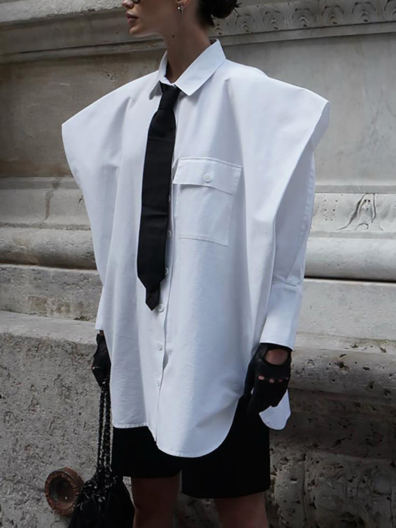 Fashion Lapel Tie Decoration Long Sleeve Shirt