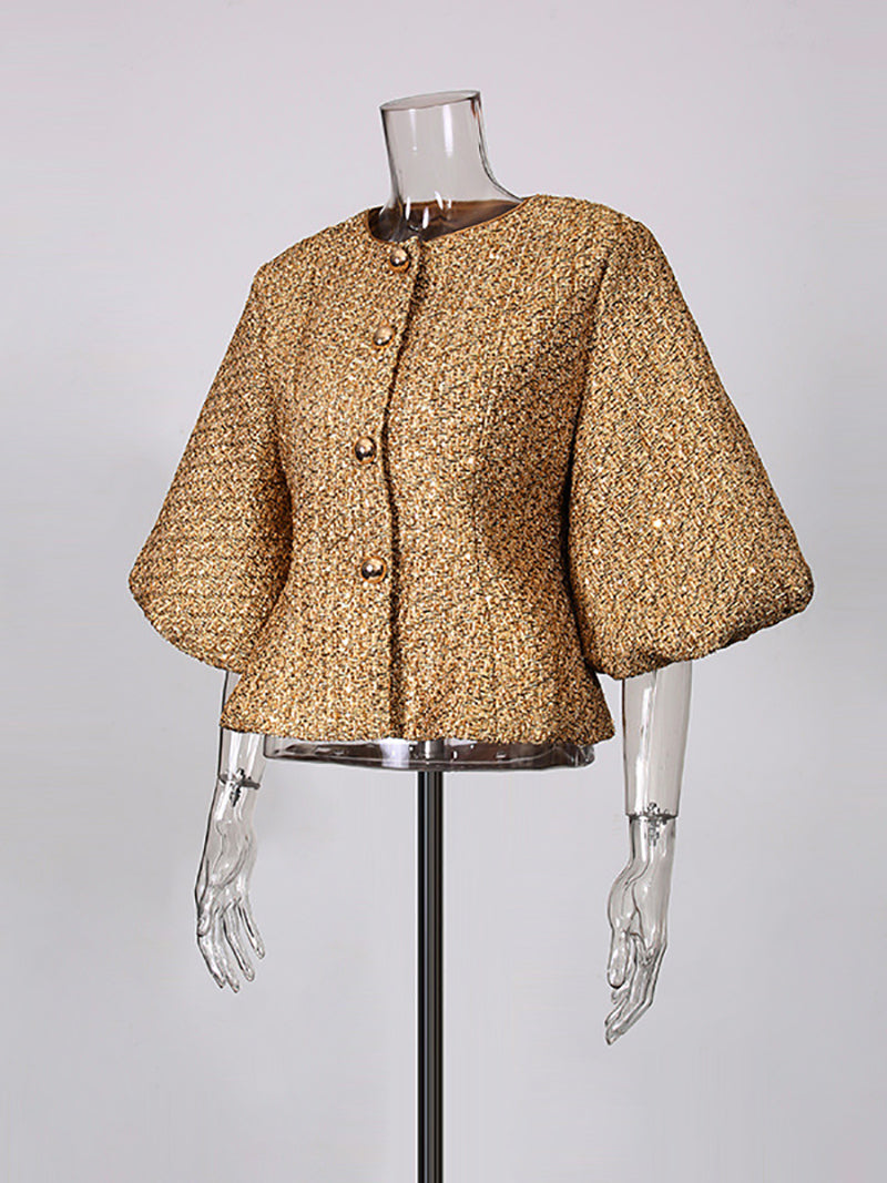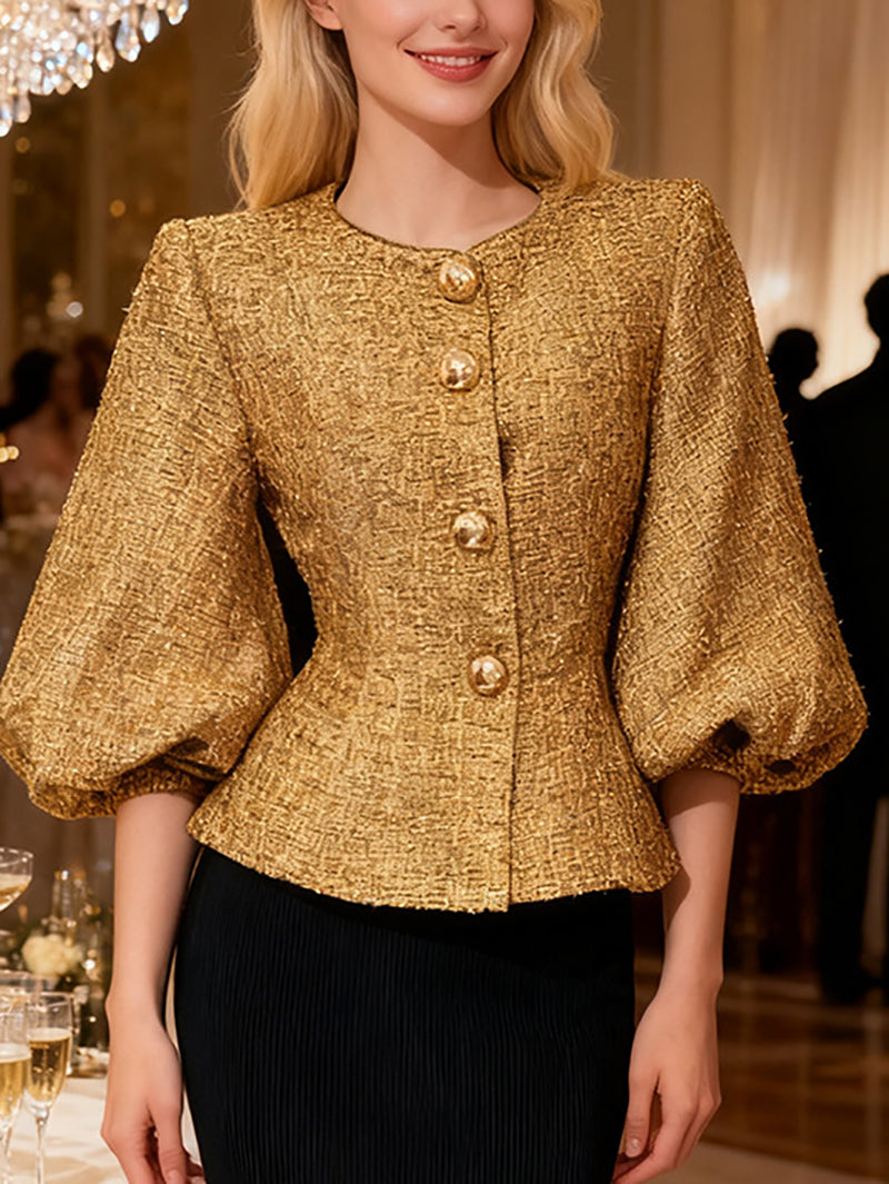Fashion Metallic Tweed Peplum Jacket