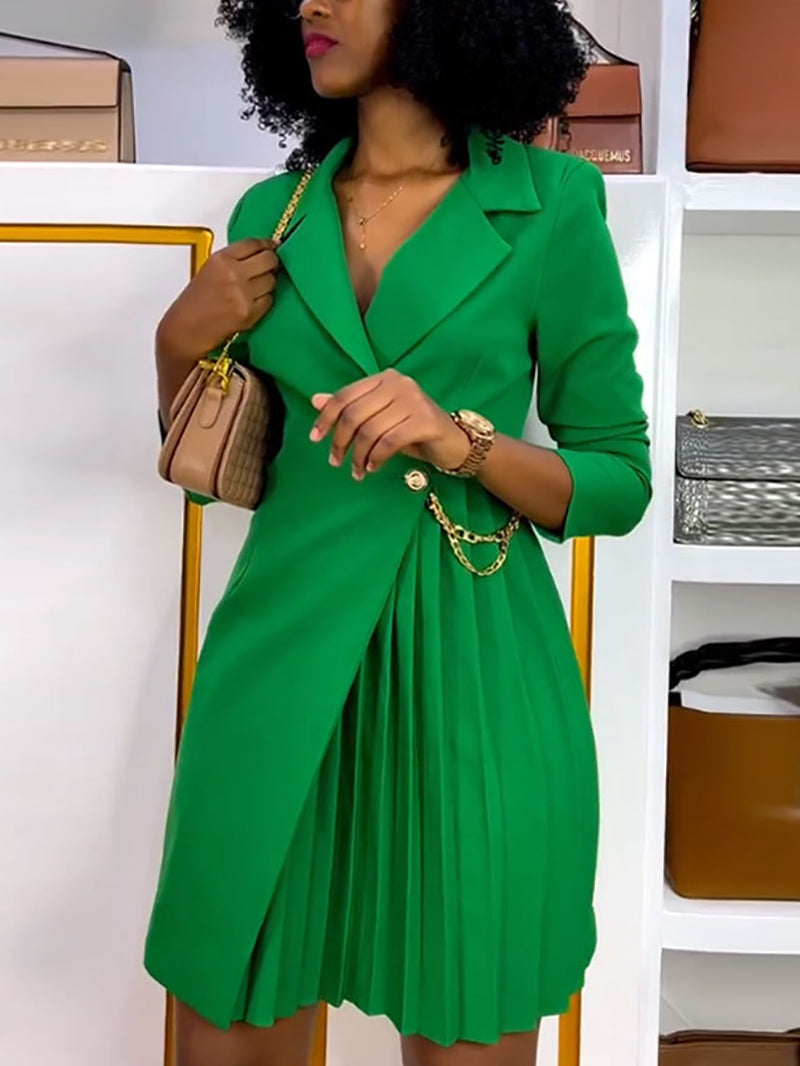 Discover the latest in fashion with our pleated lapel asymmetrical dress. With a modern design and stylish appeal, this dress is perfect for any occasion. Whether you want to make a statement or simply elevate your wardrobe, our dress offers a stylish and trendy look that is sure to turn heads.
