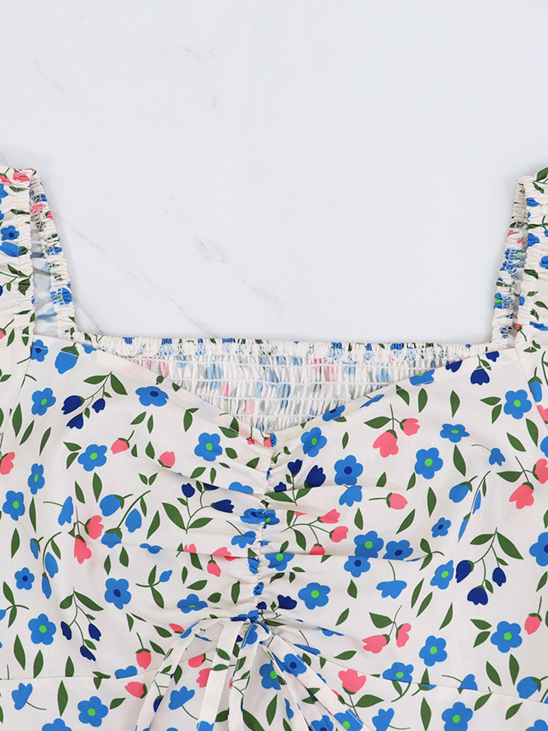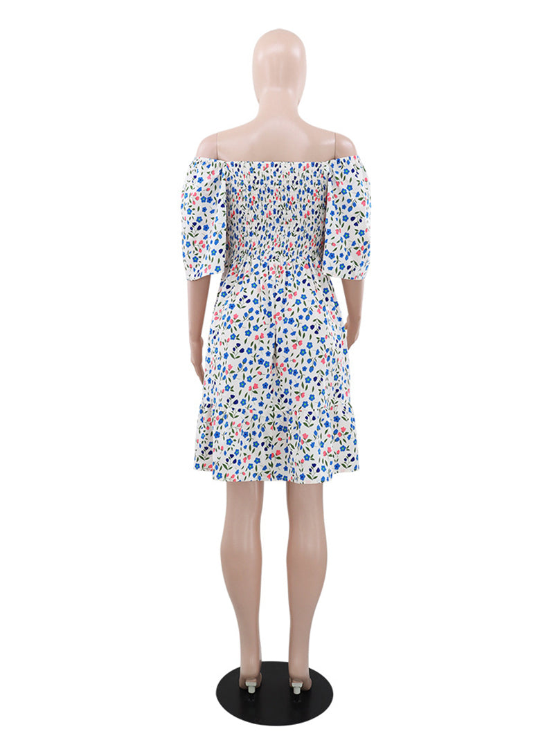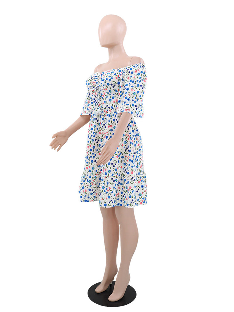 Fashion Print Off Shoulder V-neck Ruched Dress