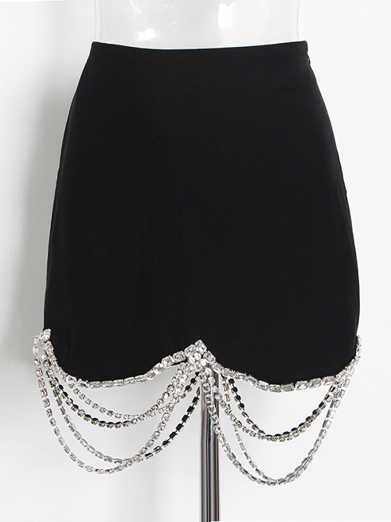 This Fashion Rhinestone Chain Short Skirt is perfect for making a statement. The sparkly rhinestone chain adds a modern touch to the classic short skirt style. Perfect for any kind of occasion, this stylish skirt will be sure to make you stand out.
