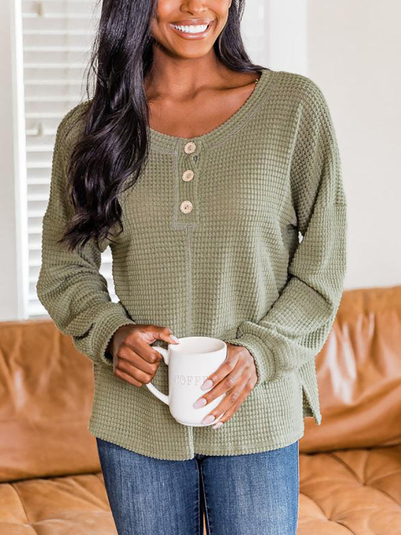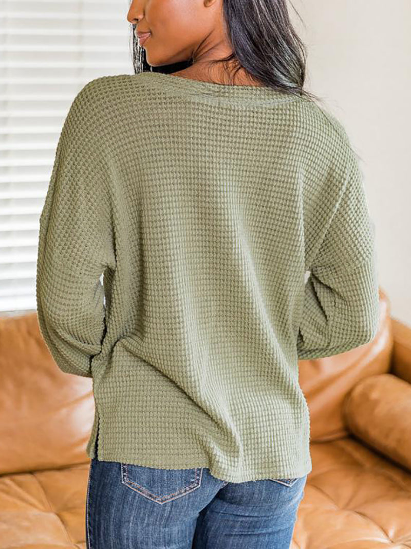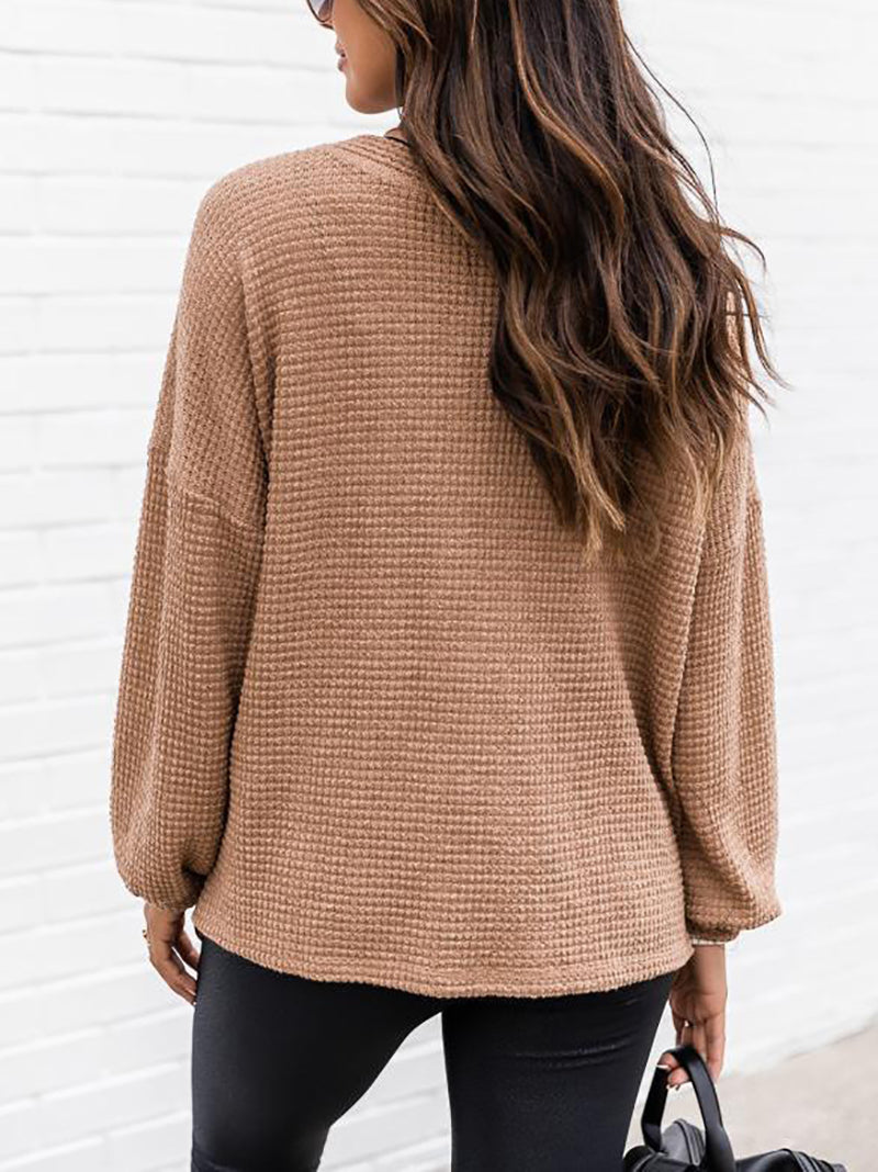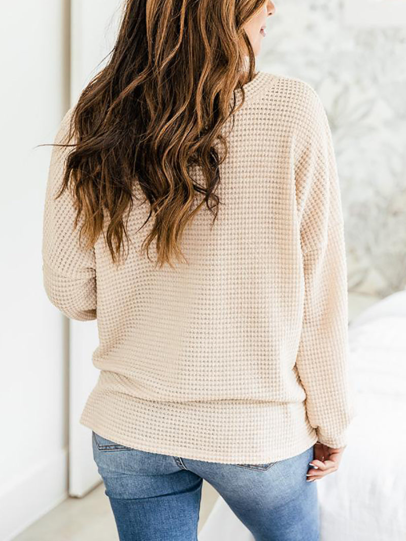 This Fashion Round Collar Loose Waffle Knit Pullover offers a comfortable and stylish fit with its relaxed silhouette and textured waffle knit design. Ideal for layering, it provides breathable warmth and effortless casual elegance, making it a versatile addition to any wholesale collection.