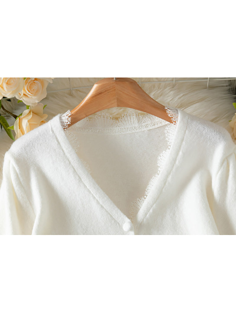 Fashion V-Neck Lace Patchwork Knit Cardigan