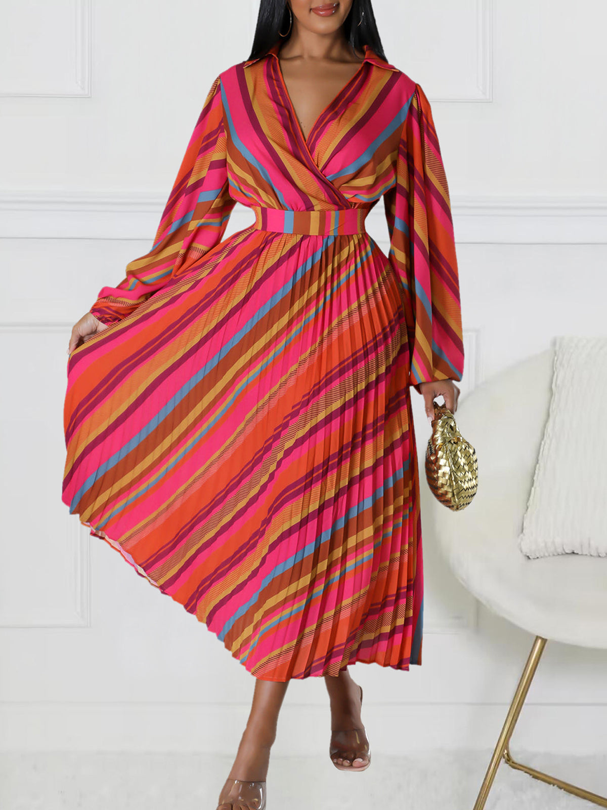 Effortlessly exude style and elegance in our Fashion V Neck Print Pleated Dress. The timeless design and flattering V neckline make this dress a must-have for any fashion-conscious individual. Stay on trend while confidently showcasing your sophisticated taste in this dress.