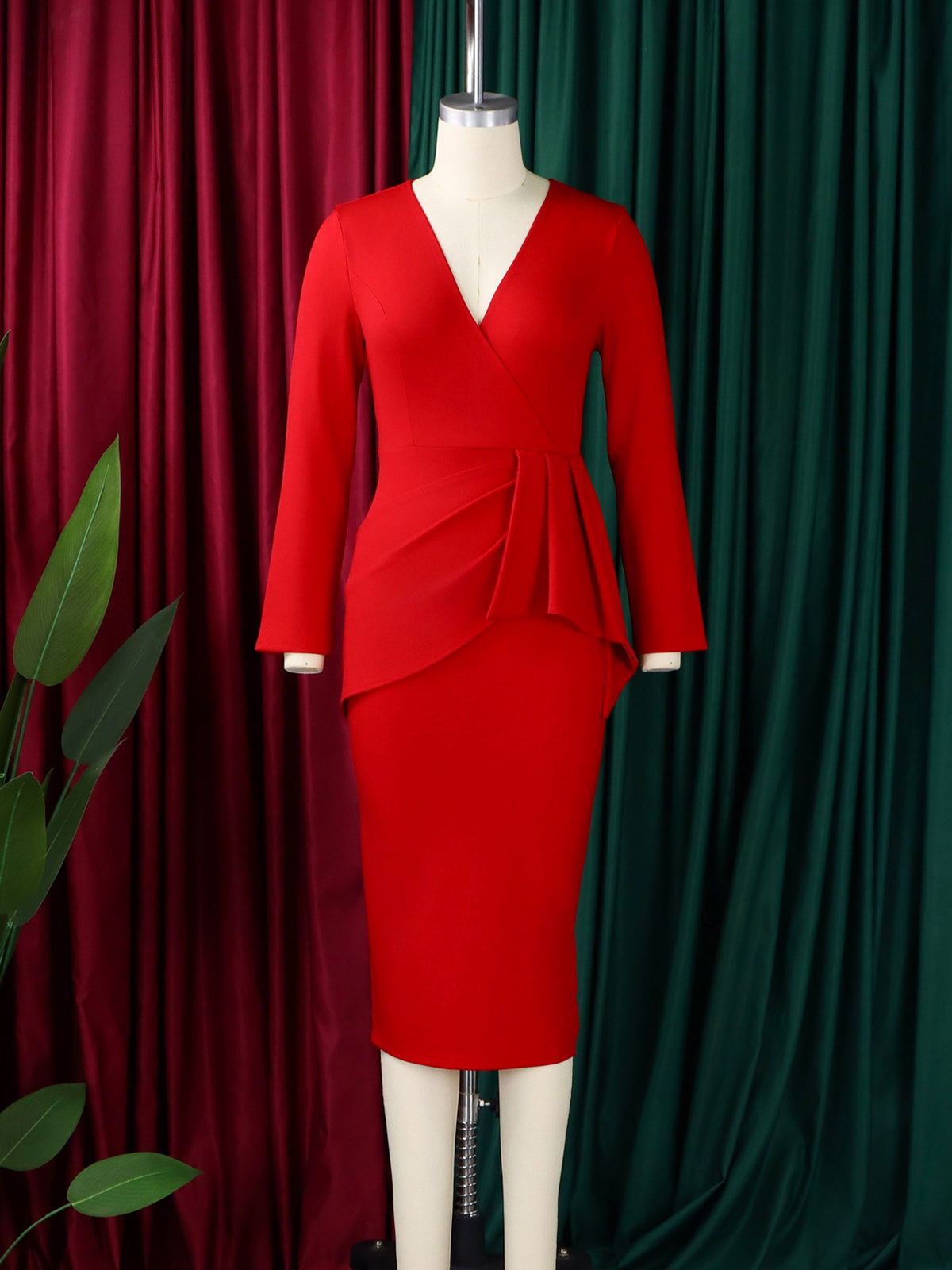 # Fashion V Neck Ruched Slim Office Midi Dress Elevate your professional wardrobe with this sophisticated midi dress, designed for the modern businesswoman. The flattering V-neckline draws attention upward while the strategic ruching creates a slimming silhouette that flatters all body types. Cut to midi length for versatile styling—pair with heels for the boardroom or flats for casual office days. The fitted design ensures a polished, put-together appearance that commands respect in any corporate setting. Premium construction and quality fabric deliver durability for everyday wear. Perfect for building a capsule wardrobe of essential pieces that transition seamlessly from desk to dinner.