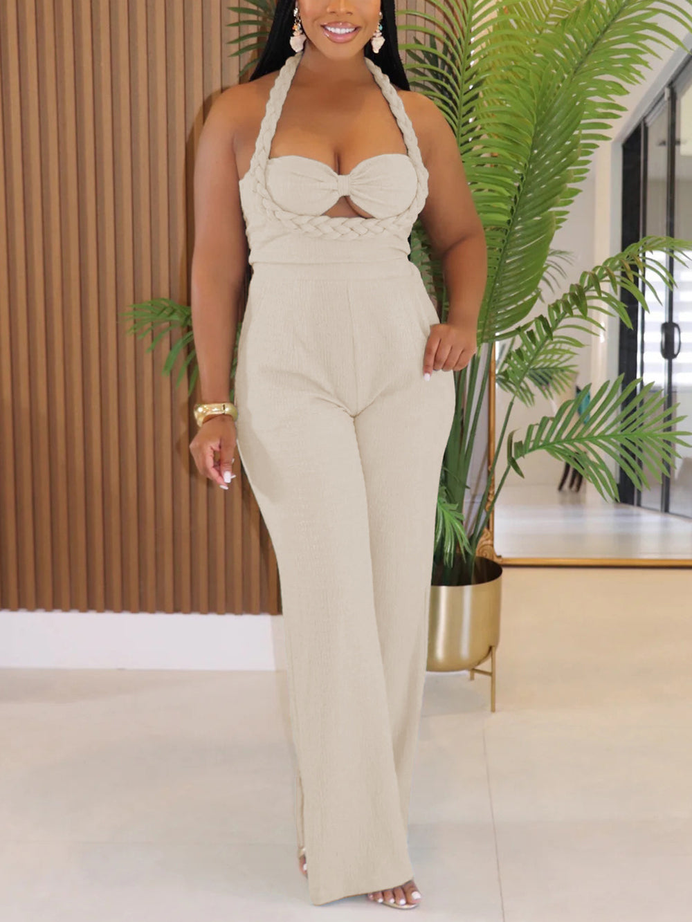 Introducing our high-quality Halter Lace-up Hollow out Slim Straight Jumpsuit, perfect for wholesalers. This jumpsuit offers a slim, straight fit and features a trendy lace-up design, combining both style and affordability for your customers. Don't miss out on this cost-effective option for your inventory.