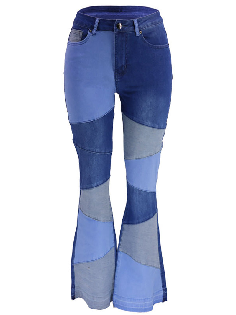 High Waist Denim Patchwork Flare Jeans Elevate your denim collection with these striking high-waist flare jeans featuring bold patchwork detailing. The classic high-rise cut flatters the silhouette while the flared leg creates a timeless, versatile look suitable for any occasion. Premium denim construction ensures durability and comfort for everyday wear. The unique patchwork design adds visual interest and contemporary flair, making these jeans a standout piece that pairs effortlessly with casual or dressed-up outfits. Perfect for retailers seeking quality basics with distinctive style appeal.
