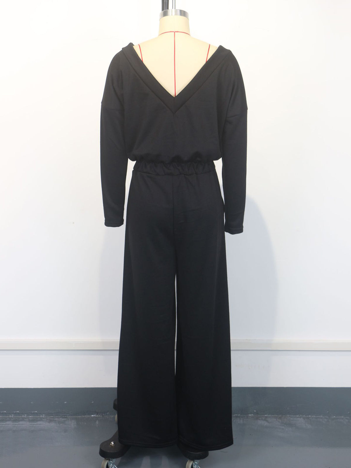 Off Shoulder V back Stretchy Waist Pocket Jumpsuit