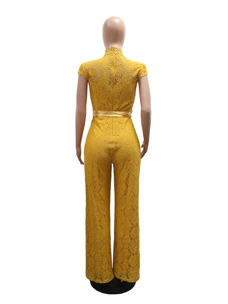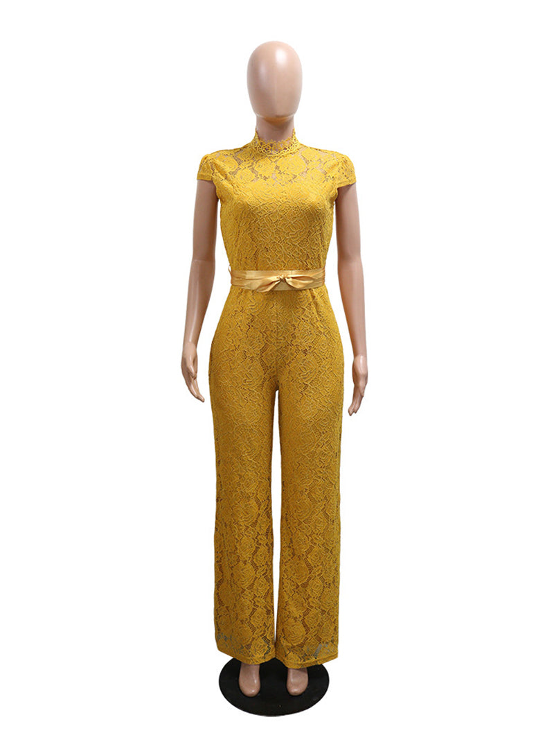 This Round Neck Lace Wide Leg Jumpsuit features a delicate lace design and a comfortable wide-leg cut, making it ideal for elegant occasions. The round neckline adds a classic touch, while the wide legs ensure ease of movement and a flattering silhouette. Perfect for wholesalers seeking fashionable and versatile apparel to expand their inventory.