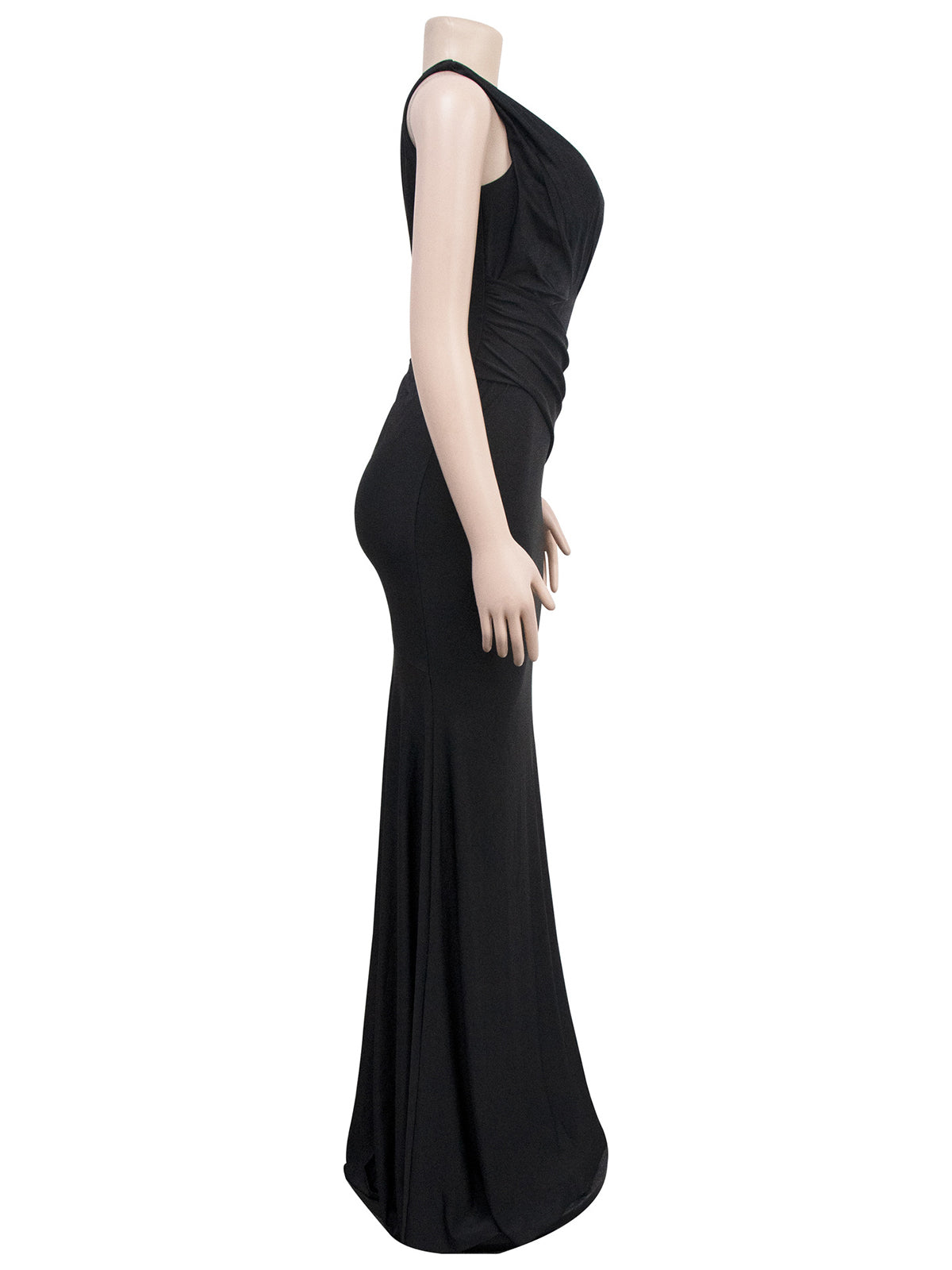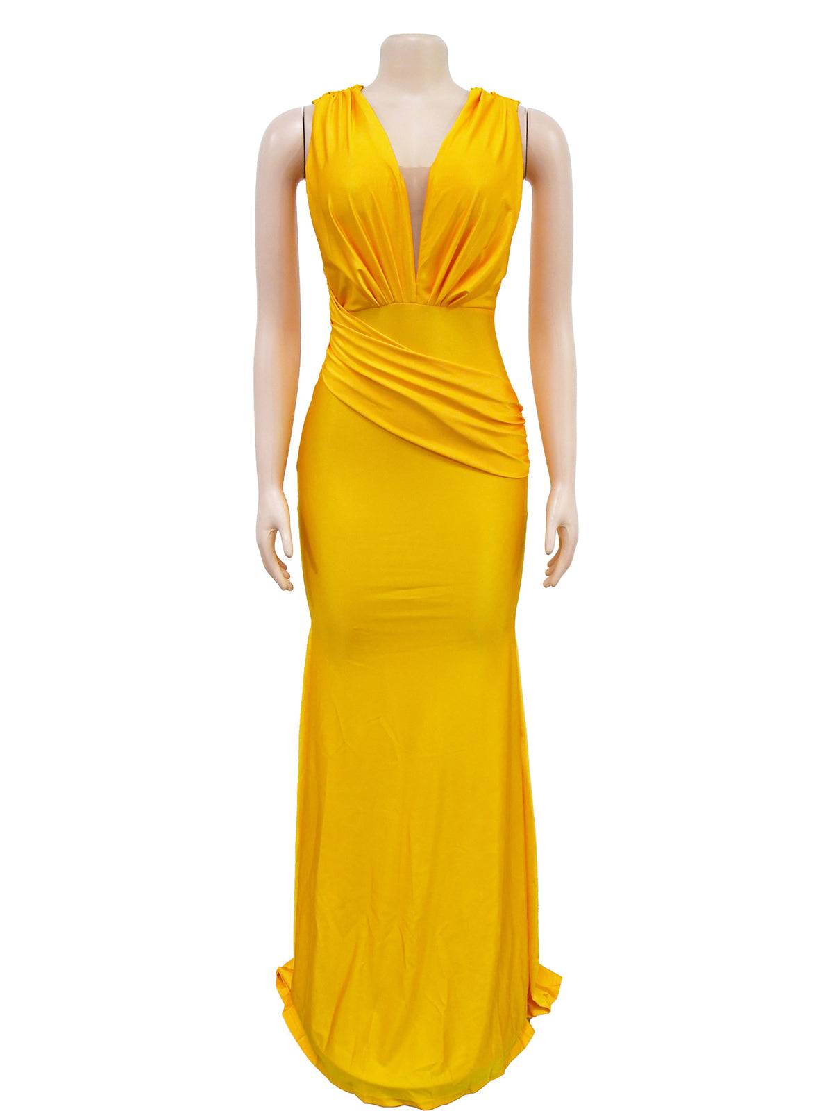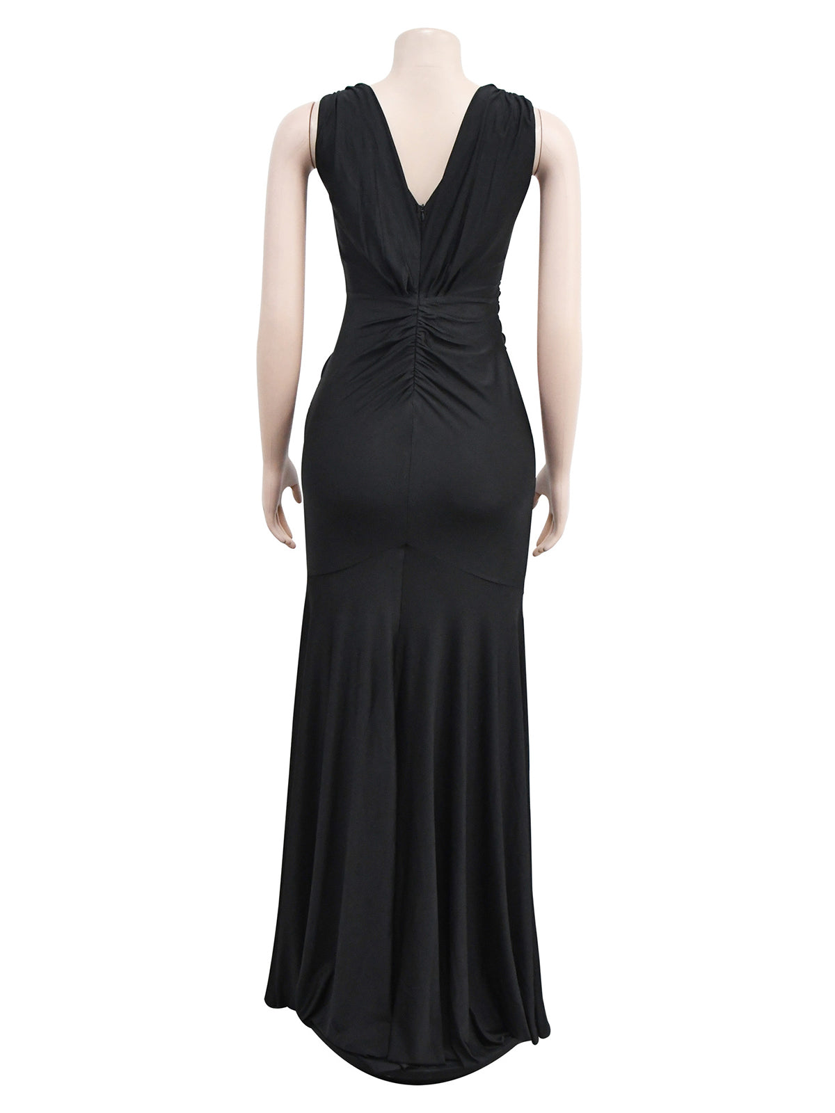 Sexy Deep V-Neck Sleeveless Pleated Fishtail Dress