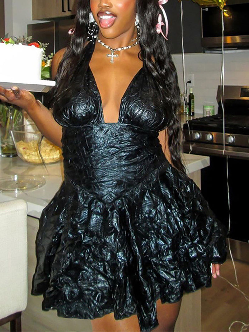 As a wholesaler, ensure your customers stand out at the club with our Sexy Halter Backless Slim Plicated Dress. Its unique design will guarantee attention and high conversion rates. Perfect for a night out.