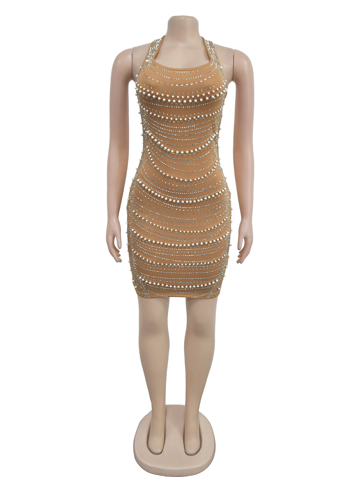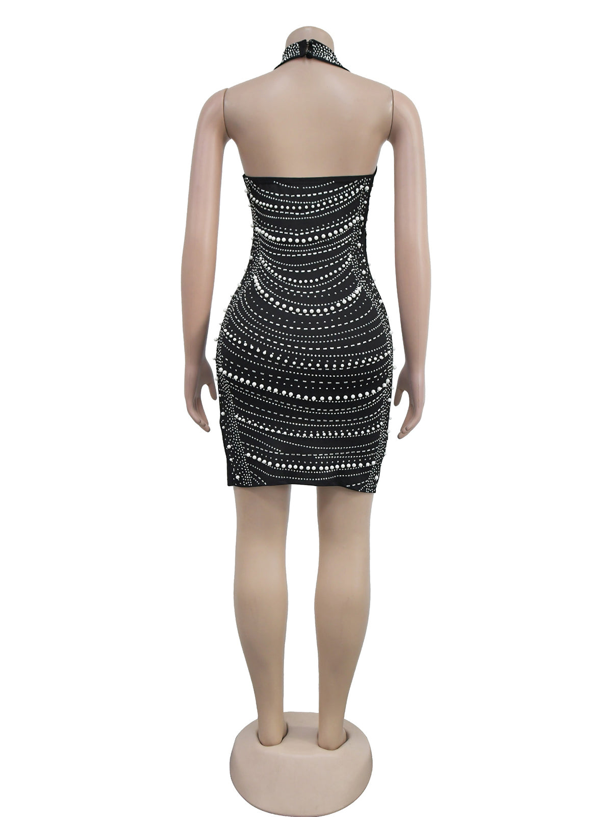 # Sexy Halter Rhinestone Nightclub Slim Mini Dress Turn heads with this stunning halter mini dress, expertly designed for the modern nightclub scene. Featuring eye-catching rhinestone embellishments that catch the light with every movement, this dress combines glamour with a sleek, body-hugging silhouette. The halter neckline offers a flattering, sophisticated look while the slim fit accentuates your curves. Perfect for wholesale buyers seeking statement pieces that appeal to fashion-forward customers looking to make an impact on the dance floor or at upscale venues.