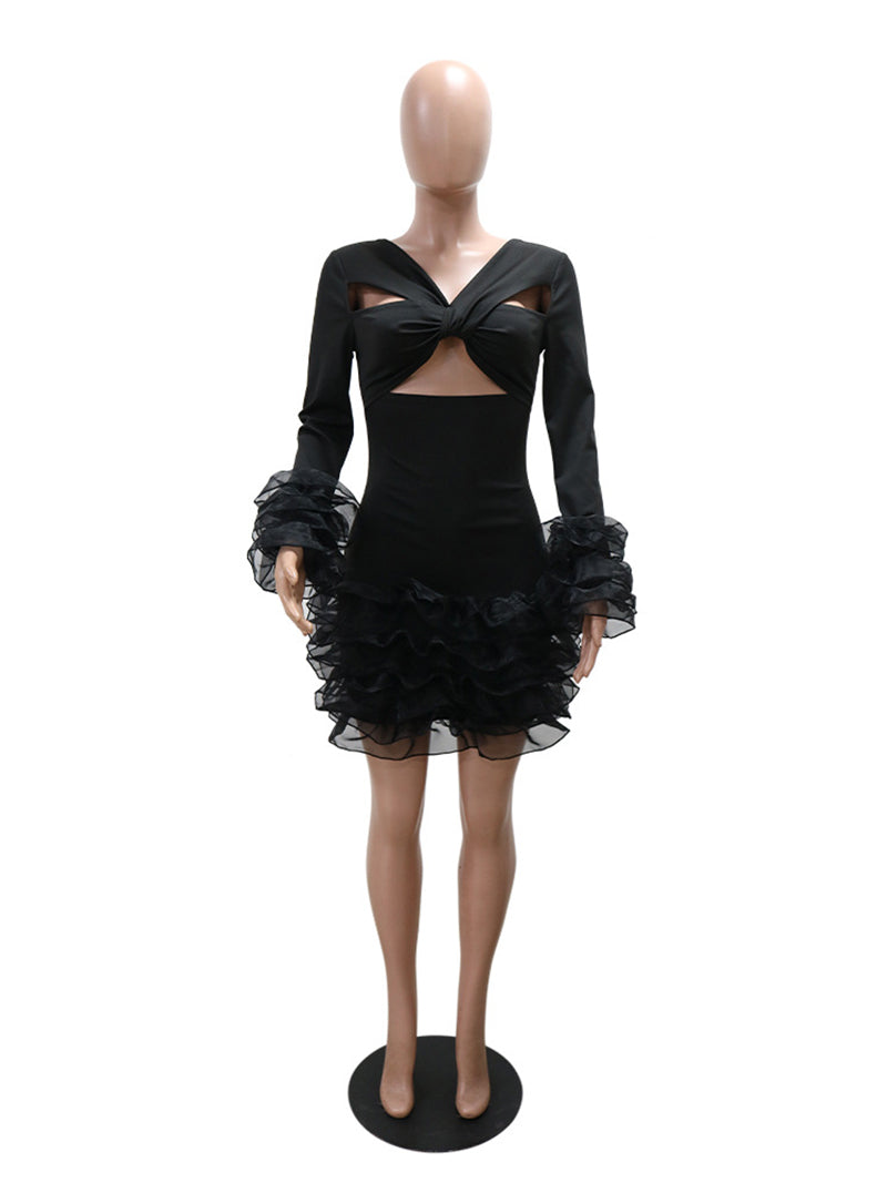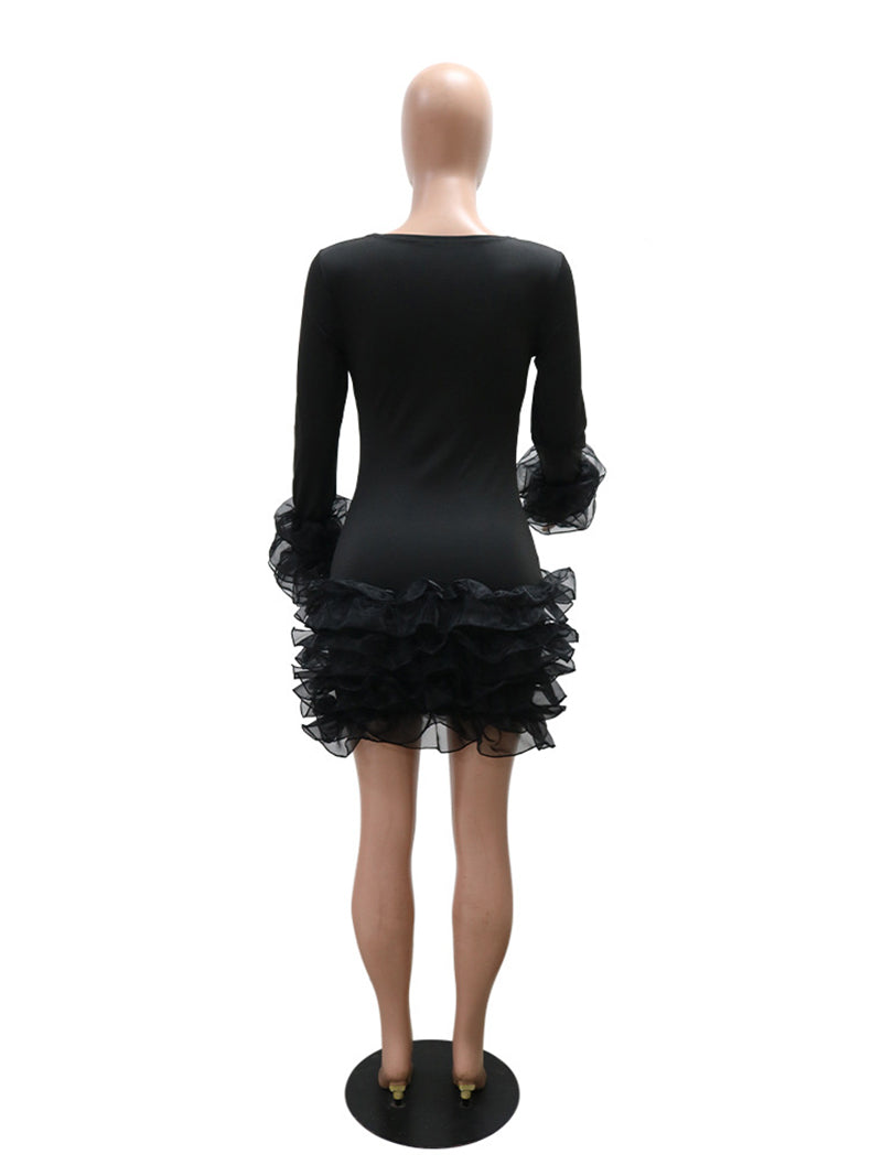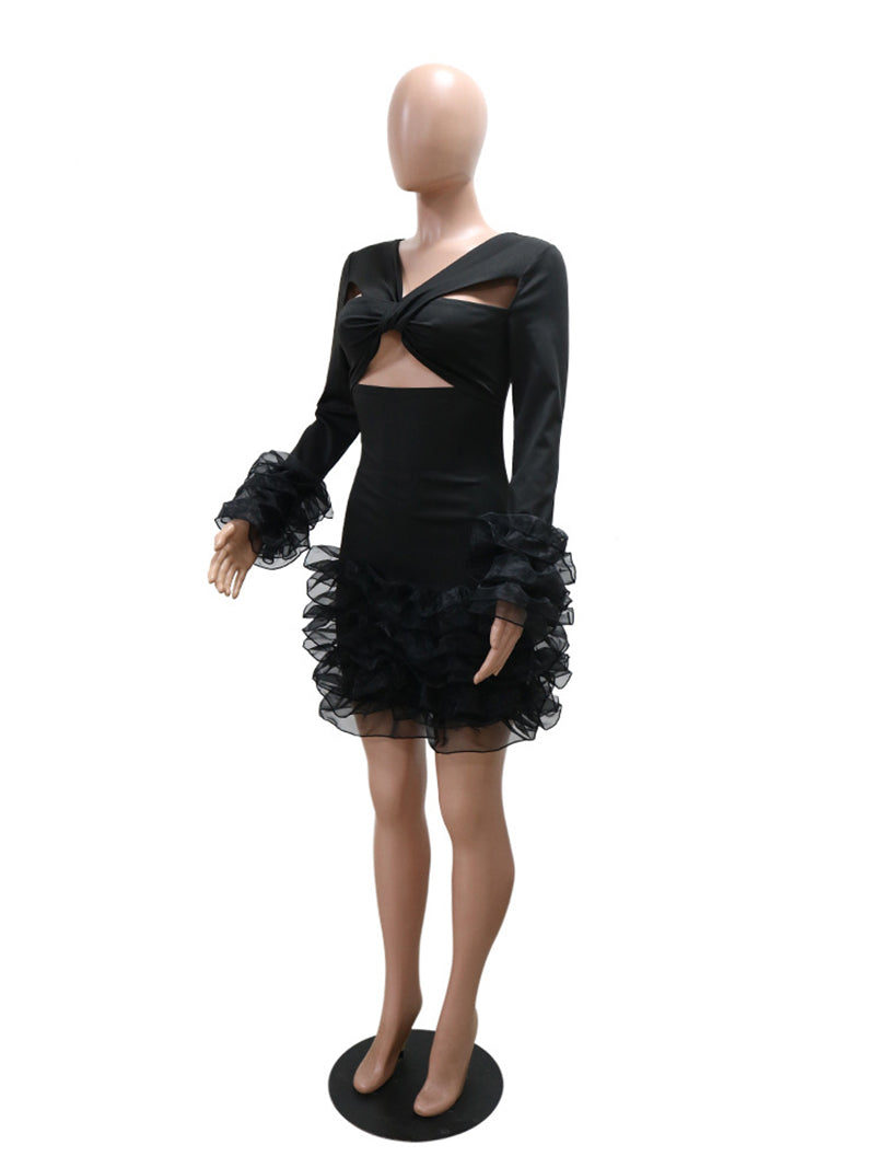 Wholesale Sexy Hollow Out Patchwork Mesh Ruffles Party Club Dress. Perfect for any party or club with its stunning mesh fabric, elegant ruffle details, and affordable price. Don't miss out on looking sexy and stylish without breaking the bank!