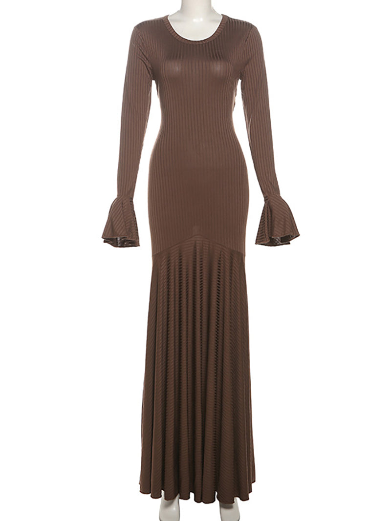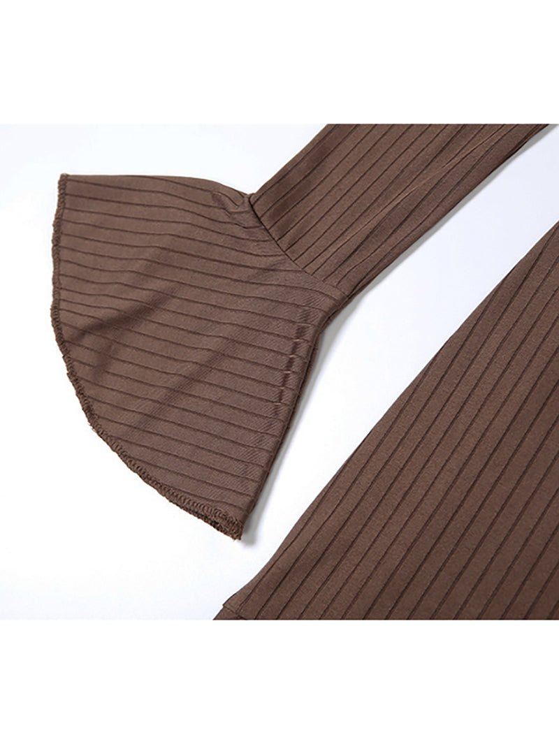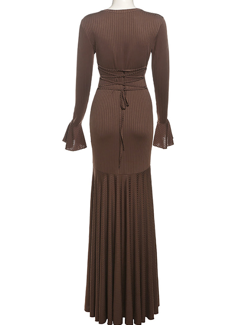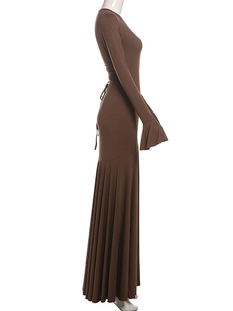 Sexy Round Neck Lace-up Flared Sleeve Slim Dress