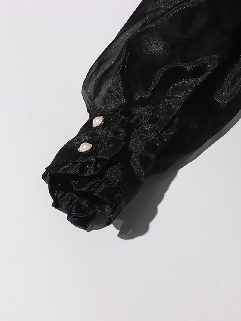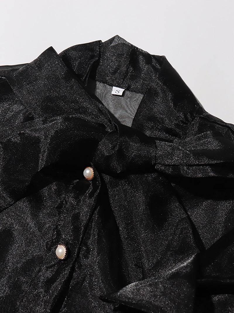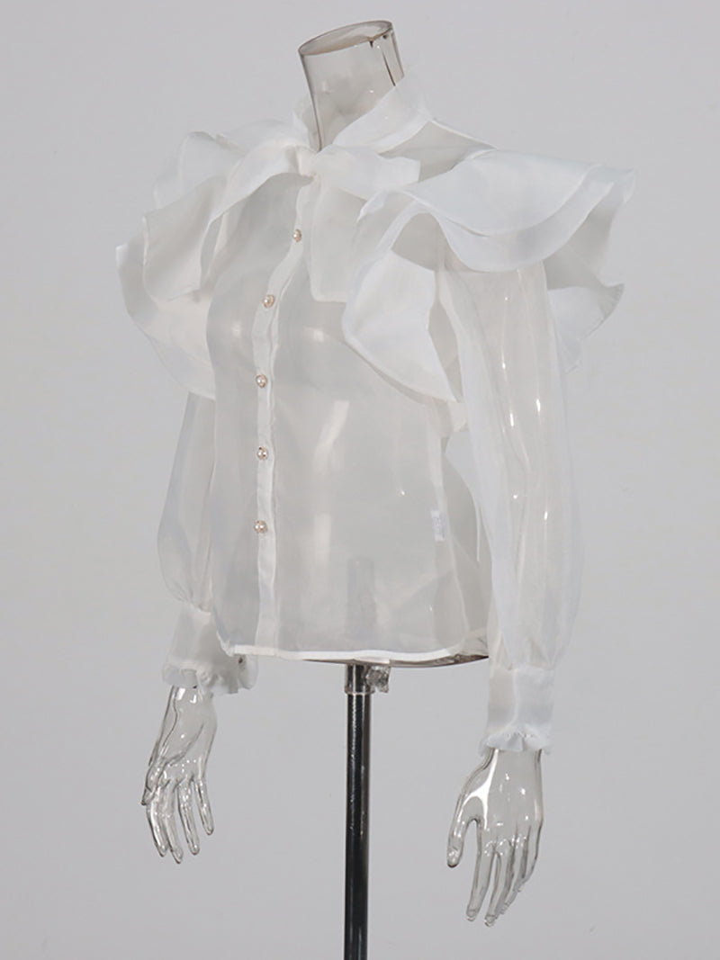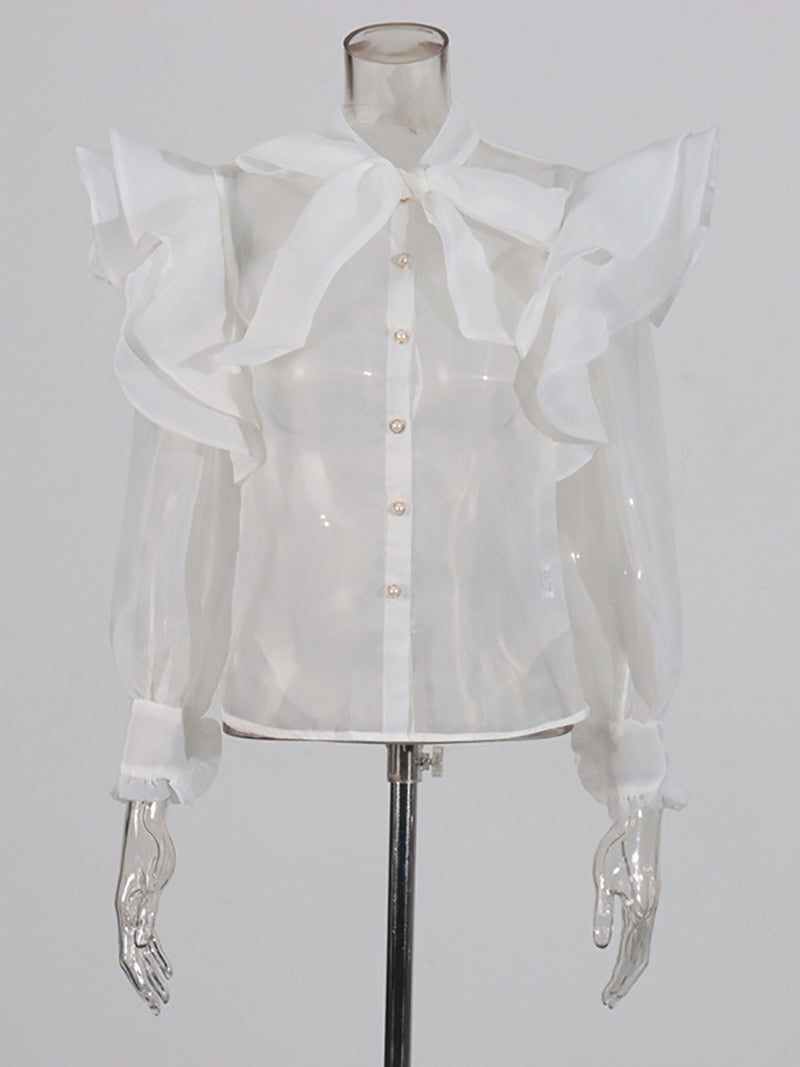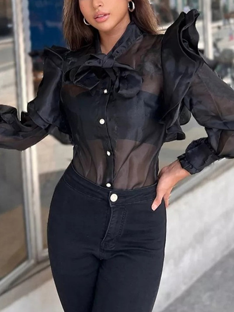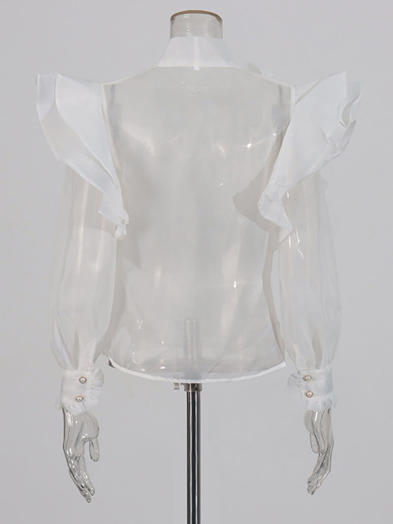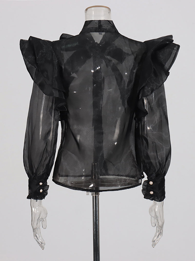 Sexy See Through Mesh Ruffle Long Sleeve Shirt