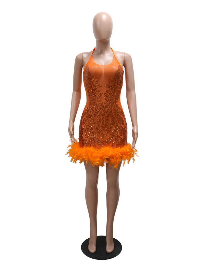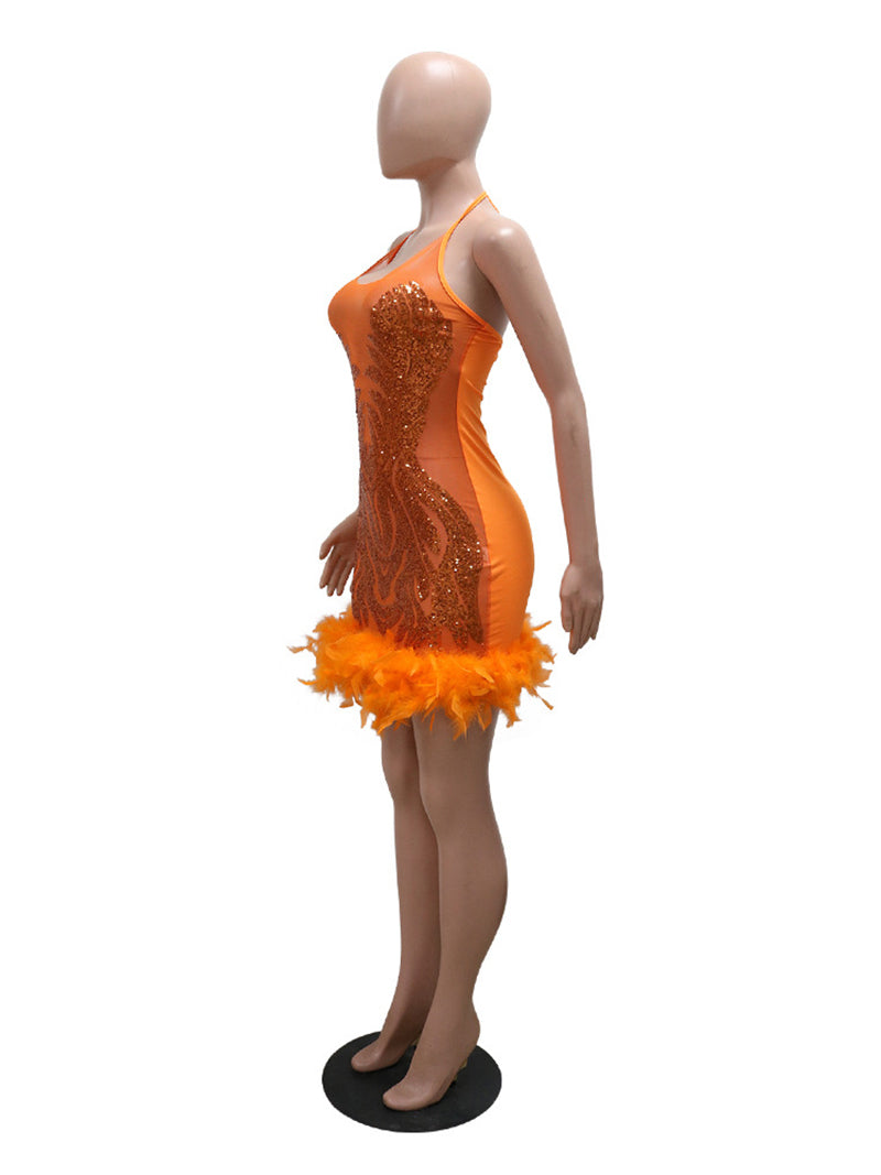 This sexy sequin see-through mesh party club dress is a must-have for any fashion-forward individual. Its feathered design and form-fitting silhouette guarantee to turn heads at any event. With its high quality and incredible value, this dress is perfect for those looking for a show-stopping look without breaking the bank.