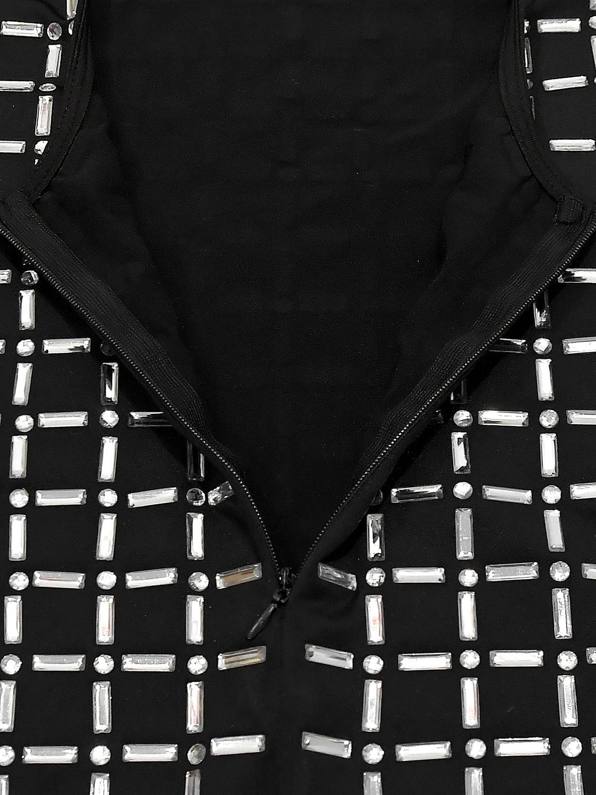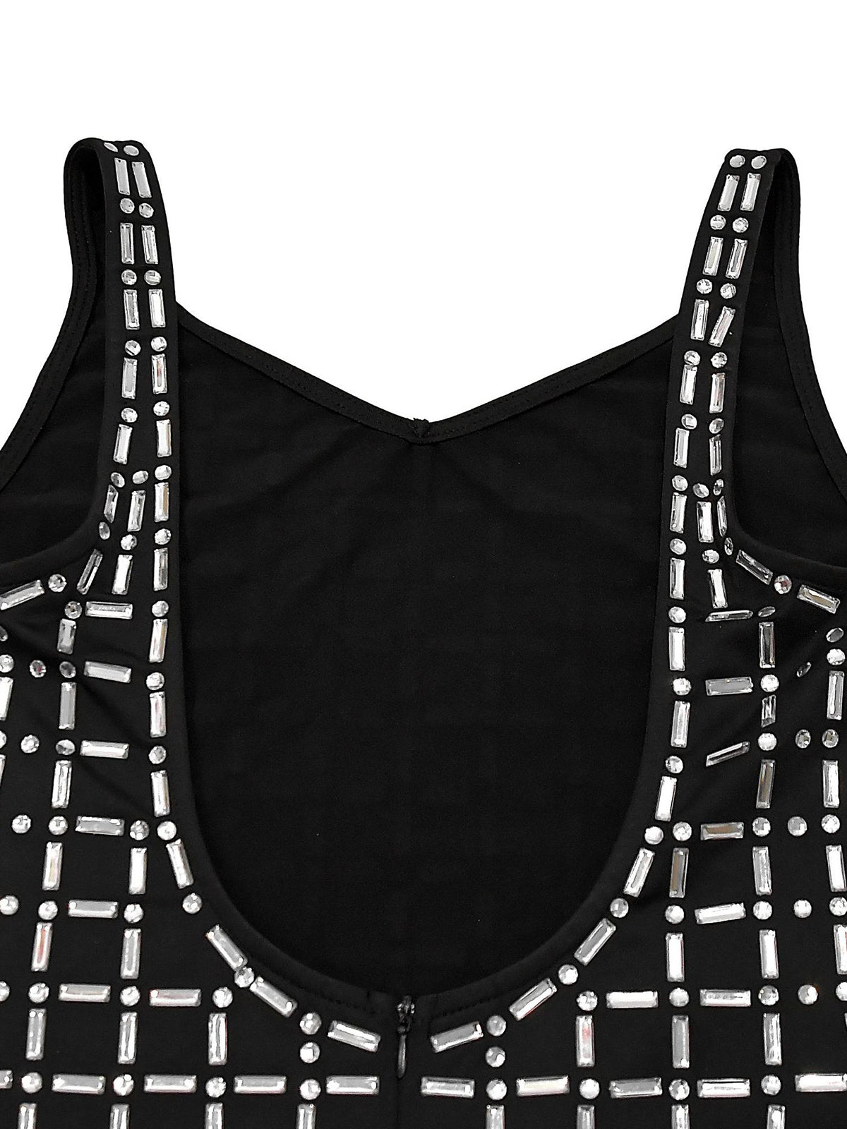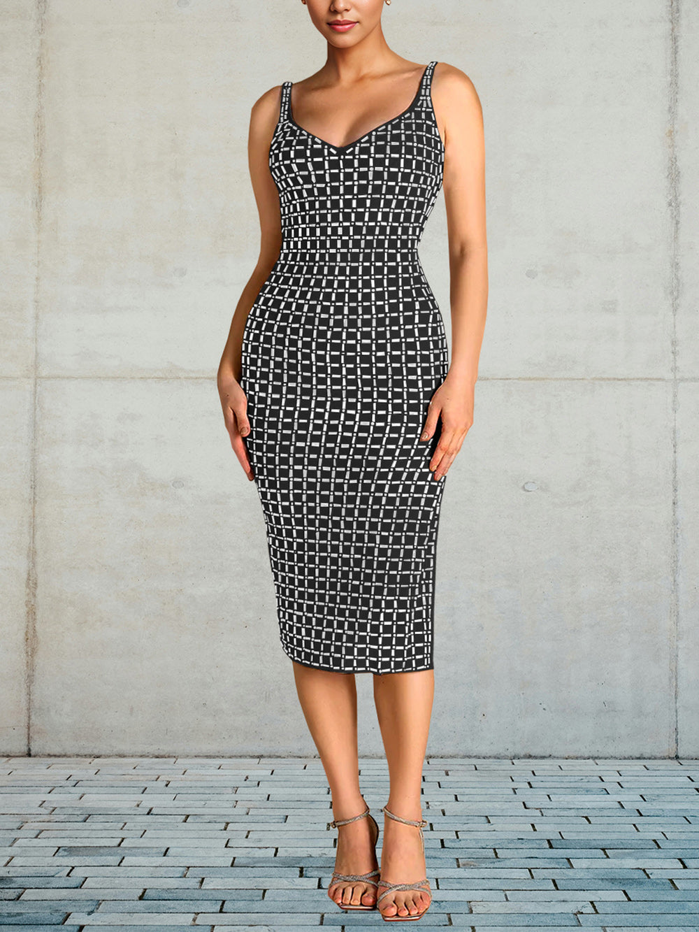 # Product Description This stunning sleeveless bodycon dress features an open back design with eye-catching rhinestone embellishments that create a luxurious, eye-catching look. The form-fitting silhouette hugs curves beautifully while the strategic cutouts add modern edge and sophistication. Perfect for evening events, parties, or upscale occasions where you want to make a bold statement. The rhinestone detailing catches light beautifully, ensuring you'll stand out in any crowd. Ideal for wholesale buyers seeking trendy, high-impact pieces that appeal to fashion-forward customers.