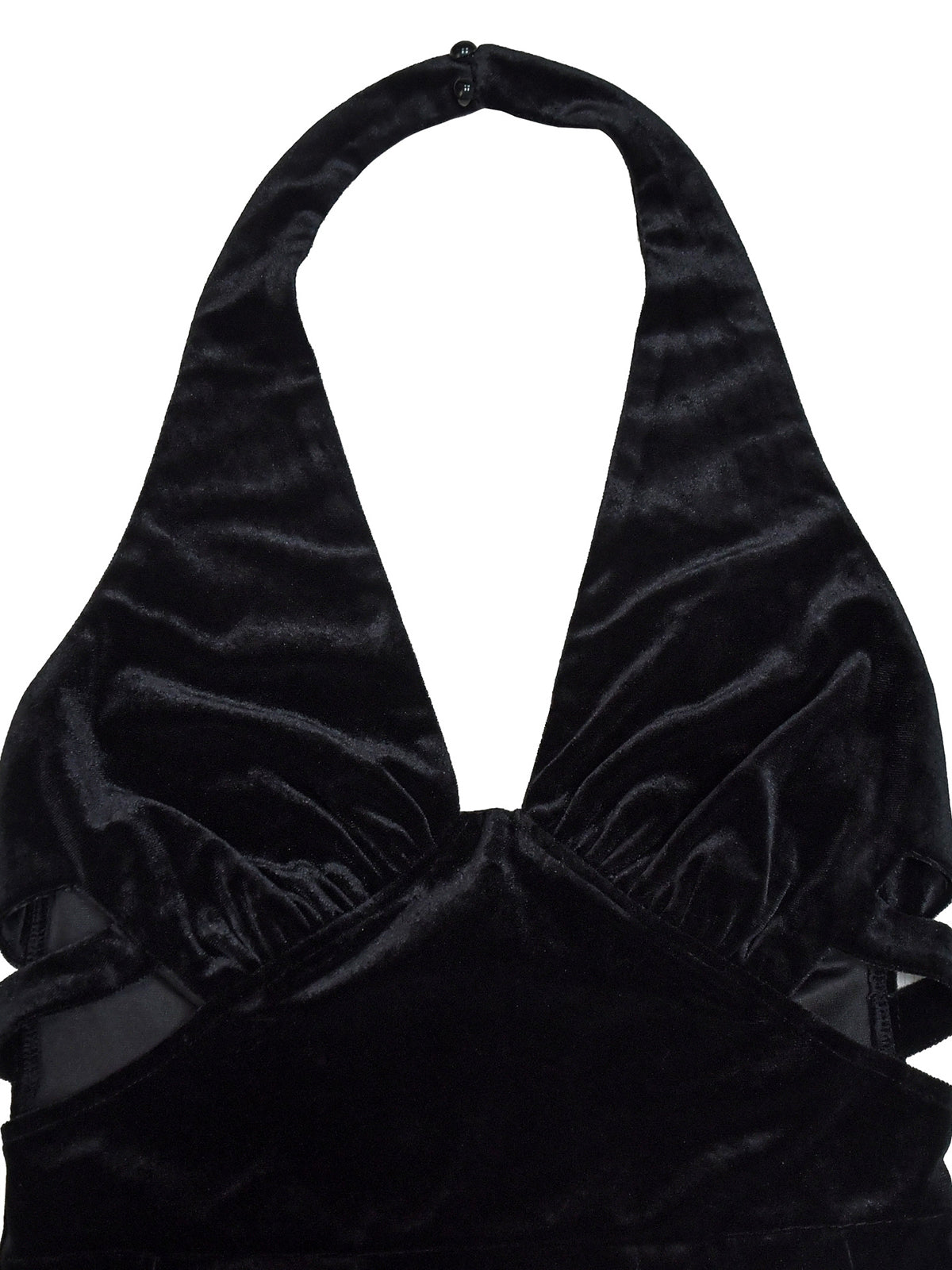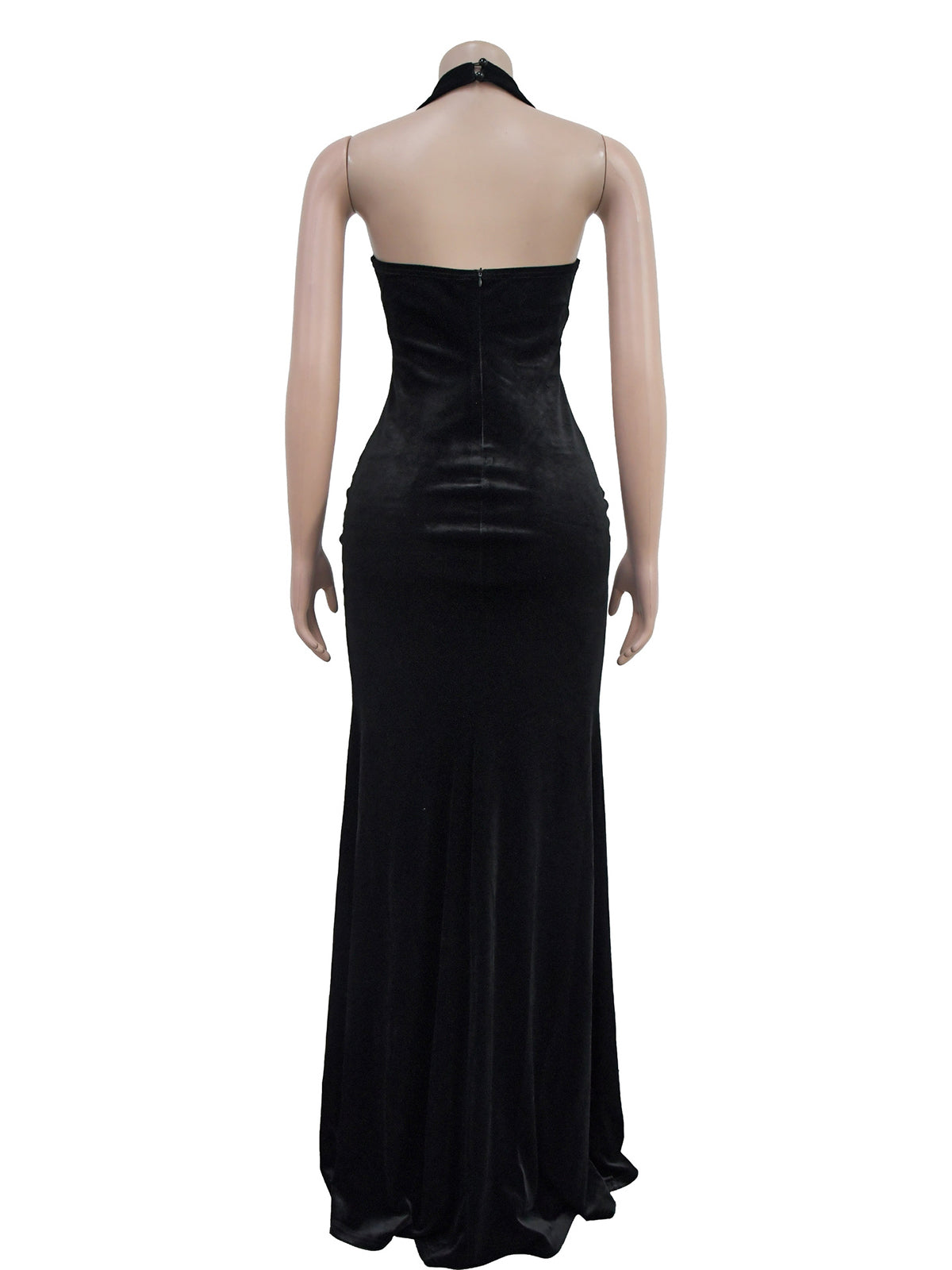 This elegant party dress features a high slit and delicate hollow out design. The sleeveless style adds a touch of sexiness, while the straps add a unique detail. Perfect for any special occasion or event, this dress is sure to make a statement.