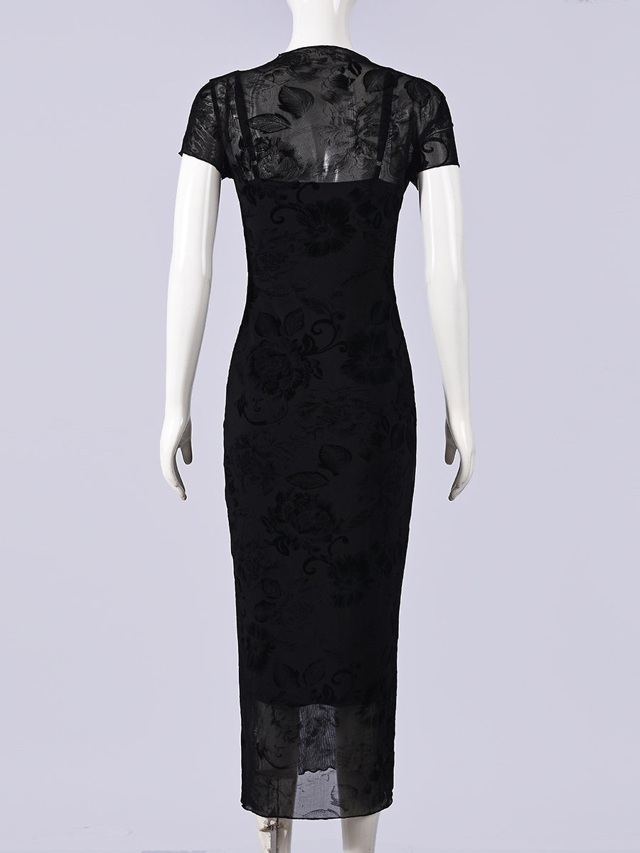 Sheer Mesh Bodycon Dress And Slip Dress Two Piece Set