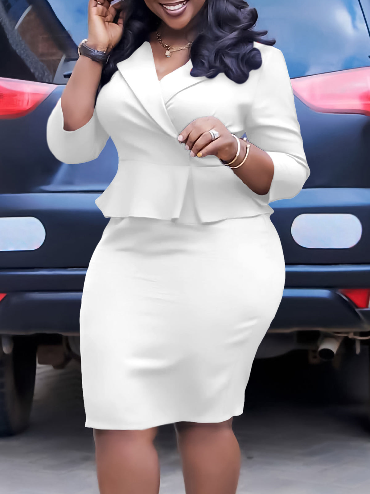 This stylish dress with a suit collar and ruffled design is perfect for any occasion. Its solid color adds a touch of sophistication to your wardrobe. Embrace fashion with this versatile dress that will leave you feeling confident and elegant.