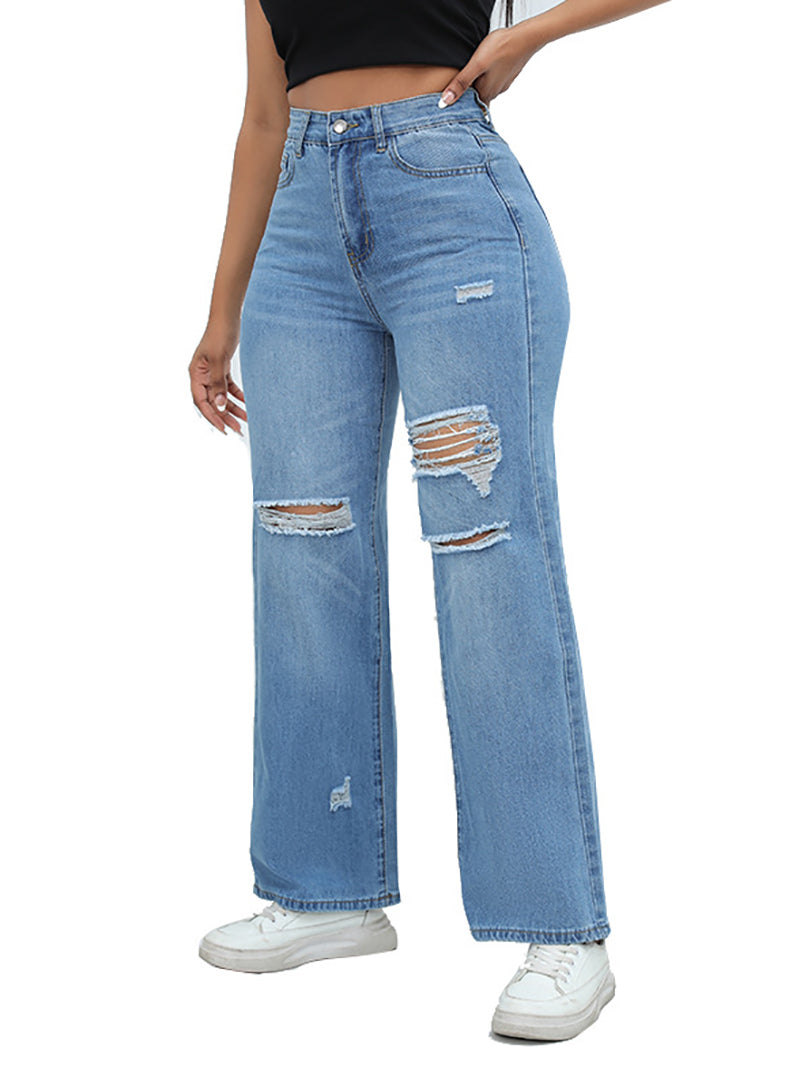 # Casual High Waist Ripped Straight Leg Jeans Elevate your denim collection with these versatile high-waist ripped straight-leg jeans. Featuring a flattering high-rise cut and on-trend distressed detailing, these jeans deliver both style and comfort for everyday wear. The straight-leg silhouette offers a timeless look that pairs effortlessly with any top, making them a wardrobe essential. Perfect for wholesale buyers seeking quality basics that appeal to fashion-conscious customers. Durable construction ensures longevity, while the casual aesthetic makes these jeans ideal for multiple seasons and occasions.