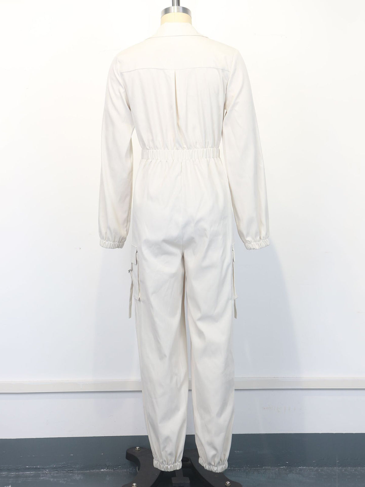 Casual Zipper Long Sleeve Cargo Jumpsuits Versatile one-piece design combining comfort and functionality for everyday wear. Features a full-length zipper for easy on-and-off access, long sleeves for extended coverage, and practical cargo pockets for storage. The relaxed fit accommodates various body types, making it ideal for casual outings, work environments, or leisure activities. Durable construction ensures longevity through regular use. Available in neutral tones that pair effortlessly with any wardrobe. Perfect for wholesale buyers seeking quality basics with strong retail appeal and repeat customer demand.