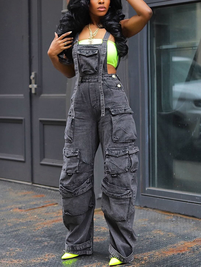 Wholesale high waist straight jumpsuit made with durable denim. Versatile and chic, it can be paired with any top for a stylish look. No need to worry about matching separates, just slip into these overalls for effortless style. Perfect for any occasion.
