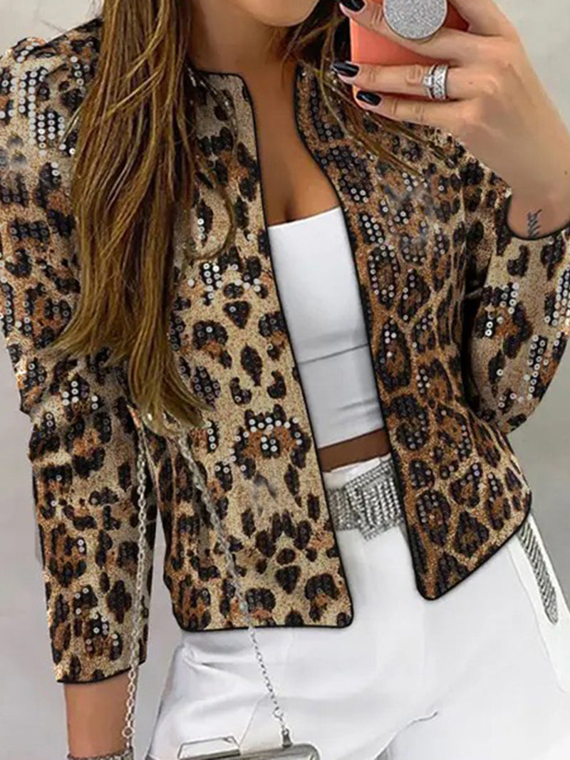This Elegant Leopard Print Sequin Cardigan Jacket combines bold animal print with sparkly sequins for a striking look. Crafted to add glamour and style, it’s perfect for retailers seeking trendy, eye-catching outerwear that appeals to fashion-forward customers.
