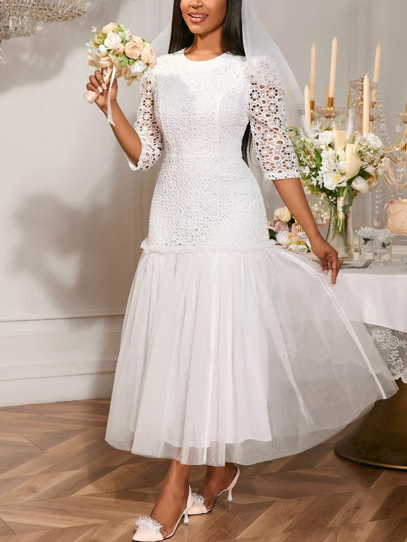 Elegant Mesh Patchwork Lace Hollow out Party Dress