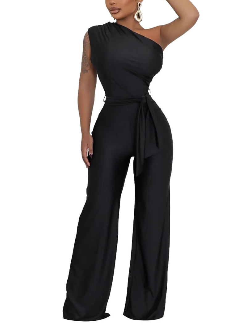 Effortlessly stylish, the Elegant One Shoulder Sleeveless Slim Jumpsuit offers unbeatable value. With its one shoulder design and figure-flattering slim fit, this jumpsuit is the perfect choice for any occasion. Elevate your wardrobe with this must-have piece.