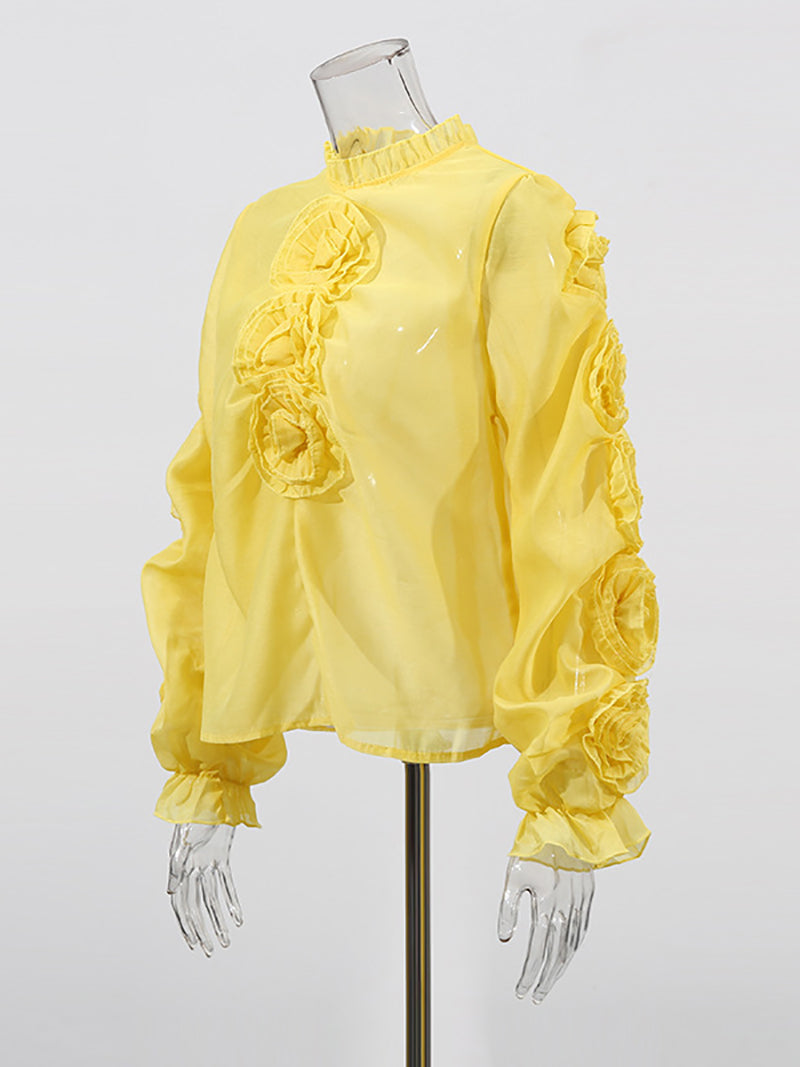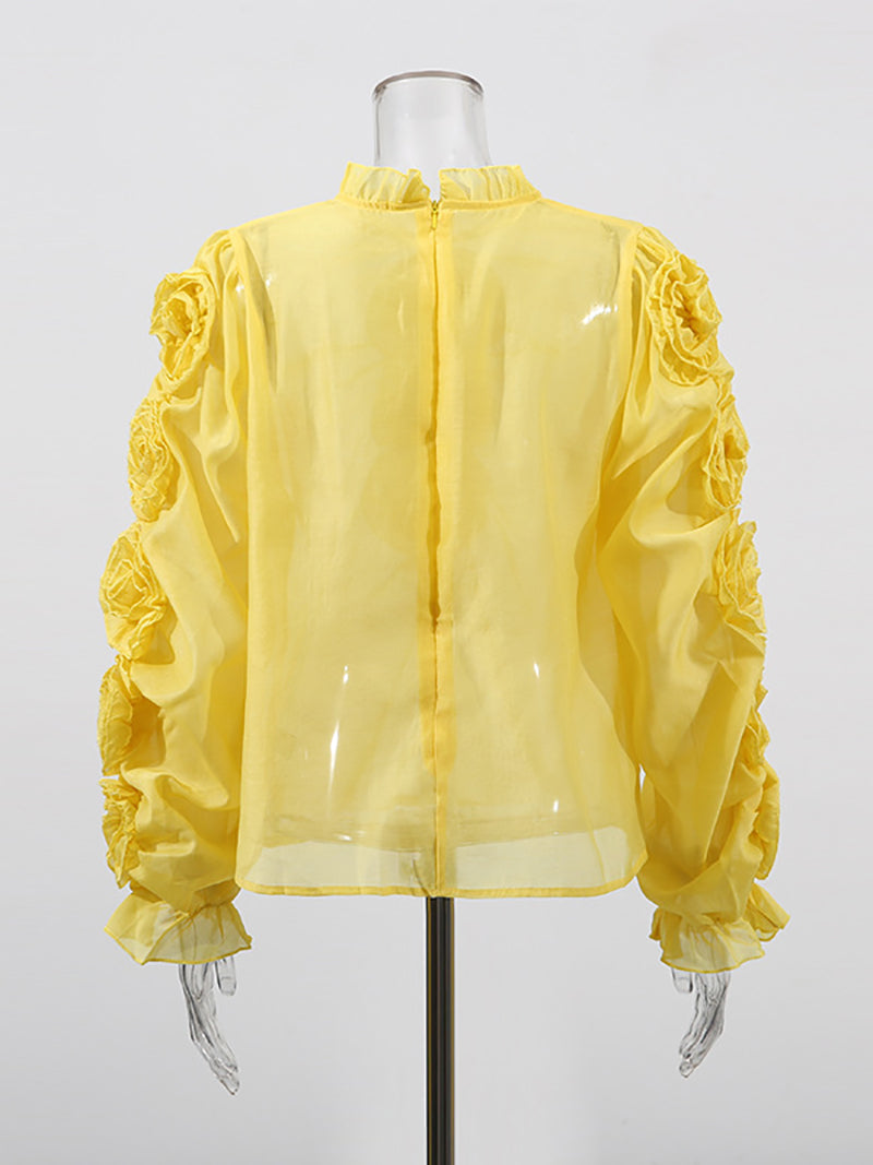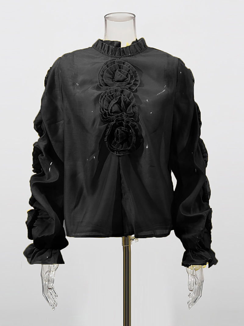 This Fashion Floral Embellished Lantern Sleeve Sheer Blouse offers excellent value for its price. Its delicate floral details and stylish lantern sleeves create a trendy look, while the sheer fabric adds a touch of elegance. Ideal for wholesalers seeking fashionable, cost-effective apparel to enhance their inventory.