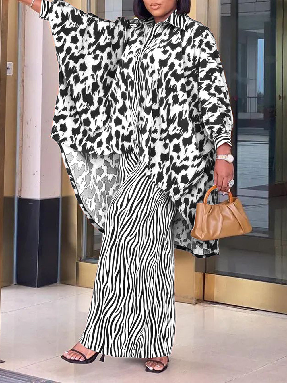 Fashion Loose Print Shirt Wide leg Pants Casual Set