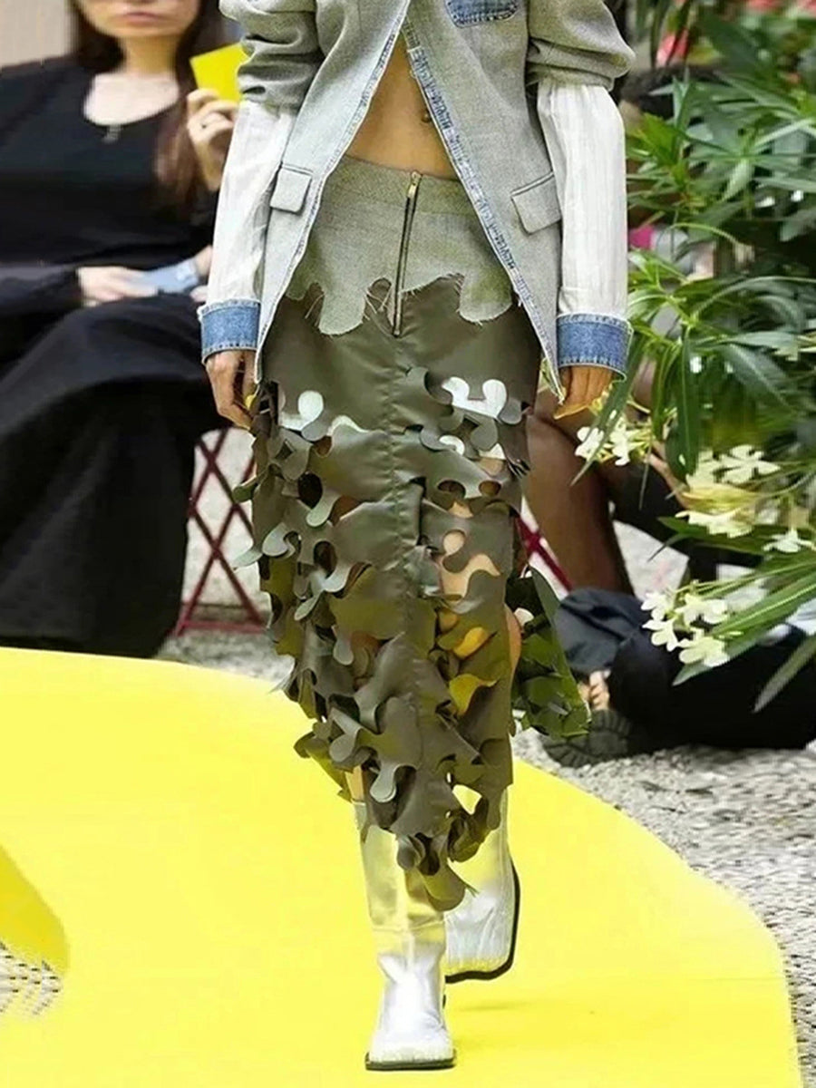 Fashion Patchwork Hollowed Long Skirt