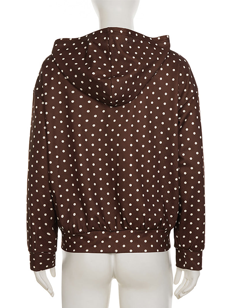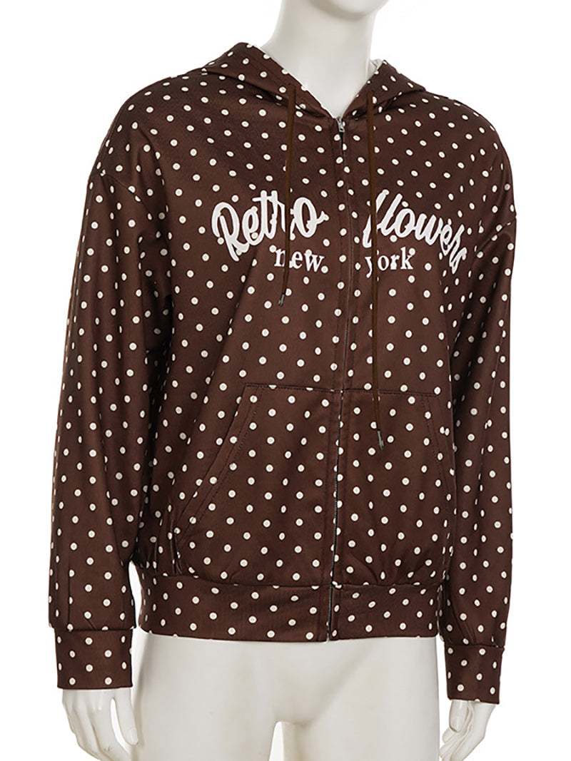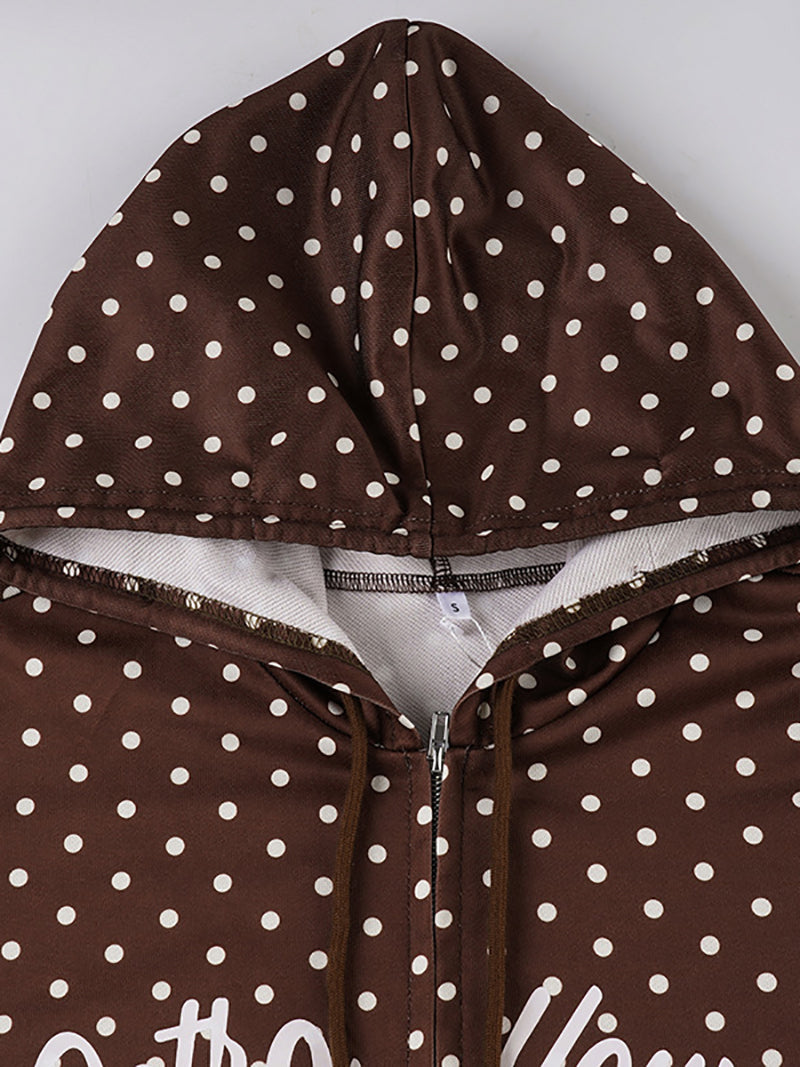 Fashion Polka Dot Letter Print Loose Zip Hoodie