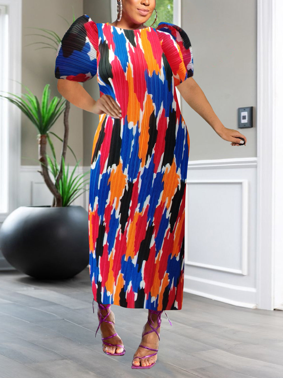 This Fashion Print Pleated O Neck Midi Dress offers excellent value for money, combining stylish design with...