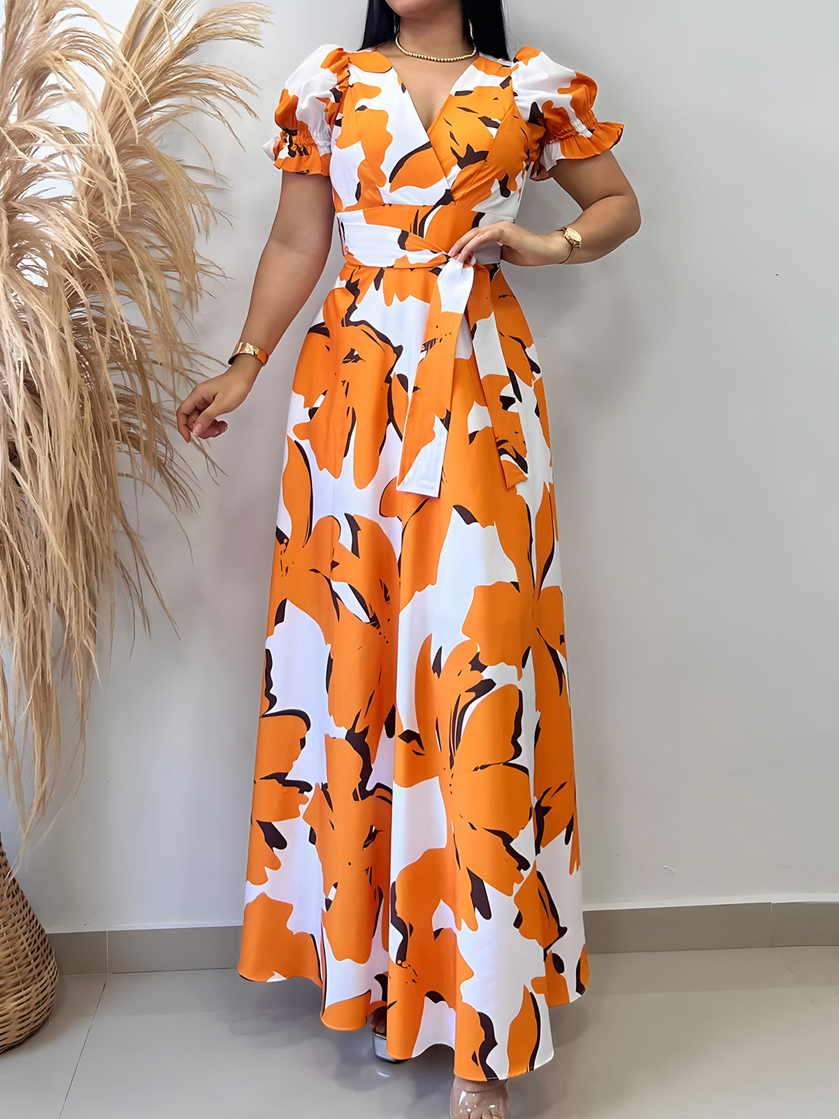 This slim dress features a plunging V-neckline and a high waist, creating a flattering silhouette. The fashionable print adds a touch of style, making it perfect for any occasion. Exude confidence and elegance in this must-have dress.