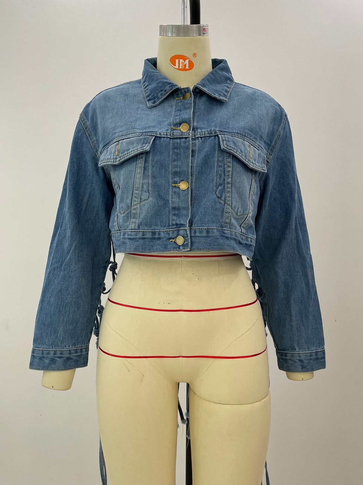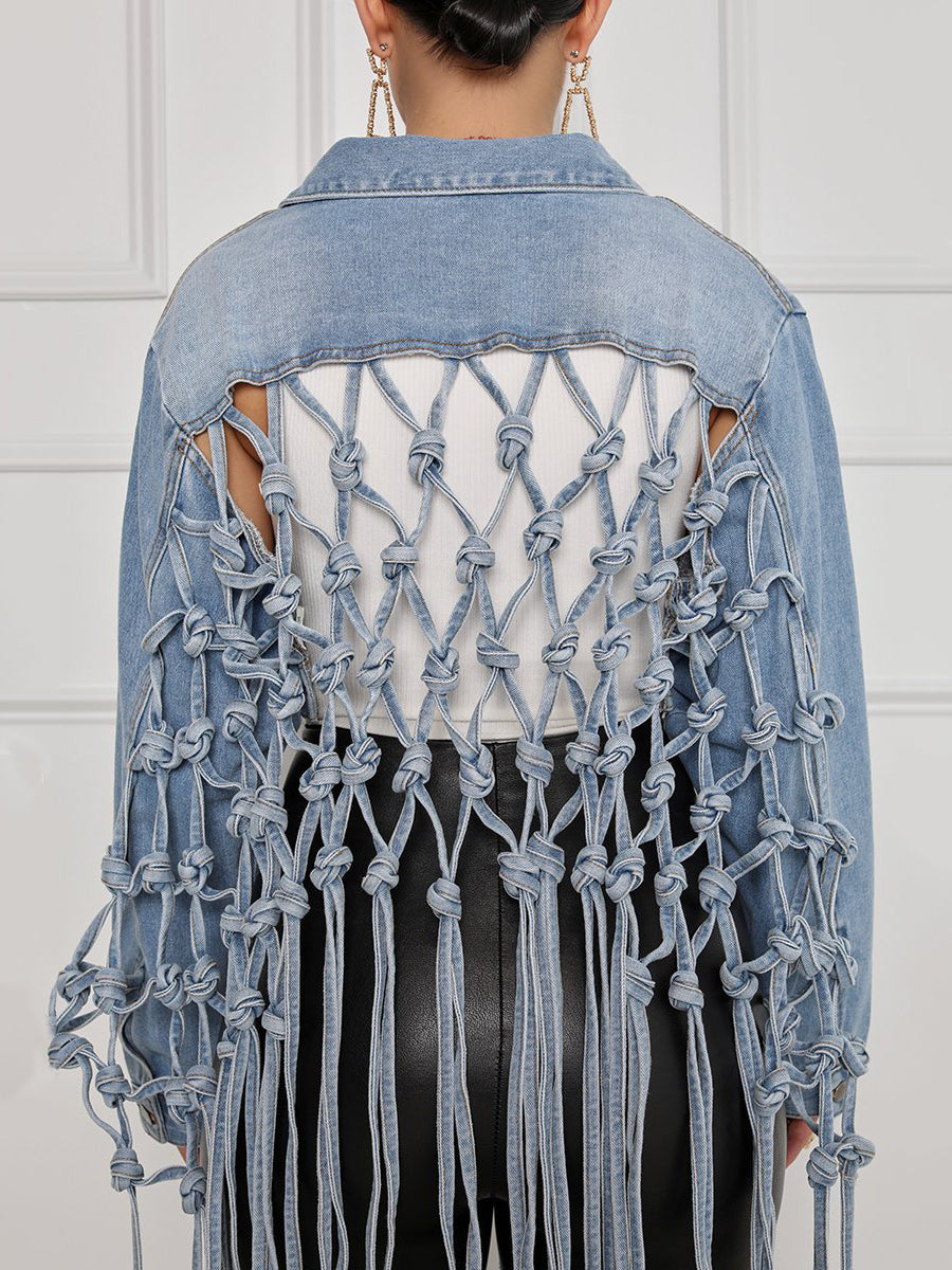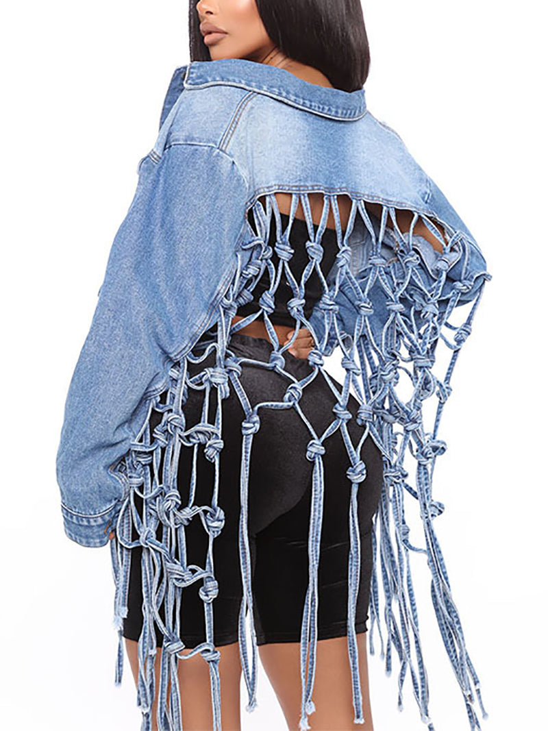 # Fashion Weave Tassel Denim Jacket Elevate your denim collection with this versatile weave tassel jacket. Crafted with quality construction, this piece features distinctive tassel detailing that adds character and movement to any outfit. The classic denim fabric offers durability and timeless appeal, making it a reliable choice for wholesale buyers seeking inventory with strong customer demand. Perfect for layering across seasons, this jacket combines style with practicality. Ideal for retailers looking to stock pieces that resonate with fashion-forward customers seeking unique wardrobe staples.
