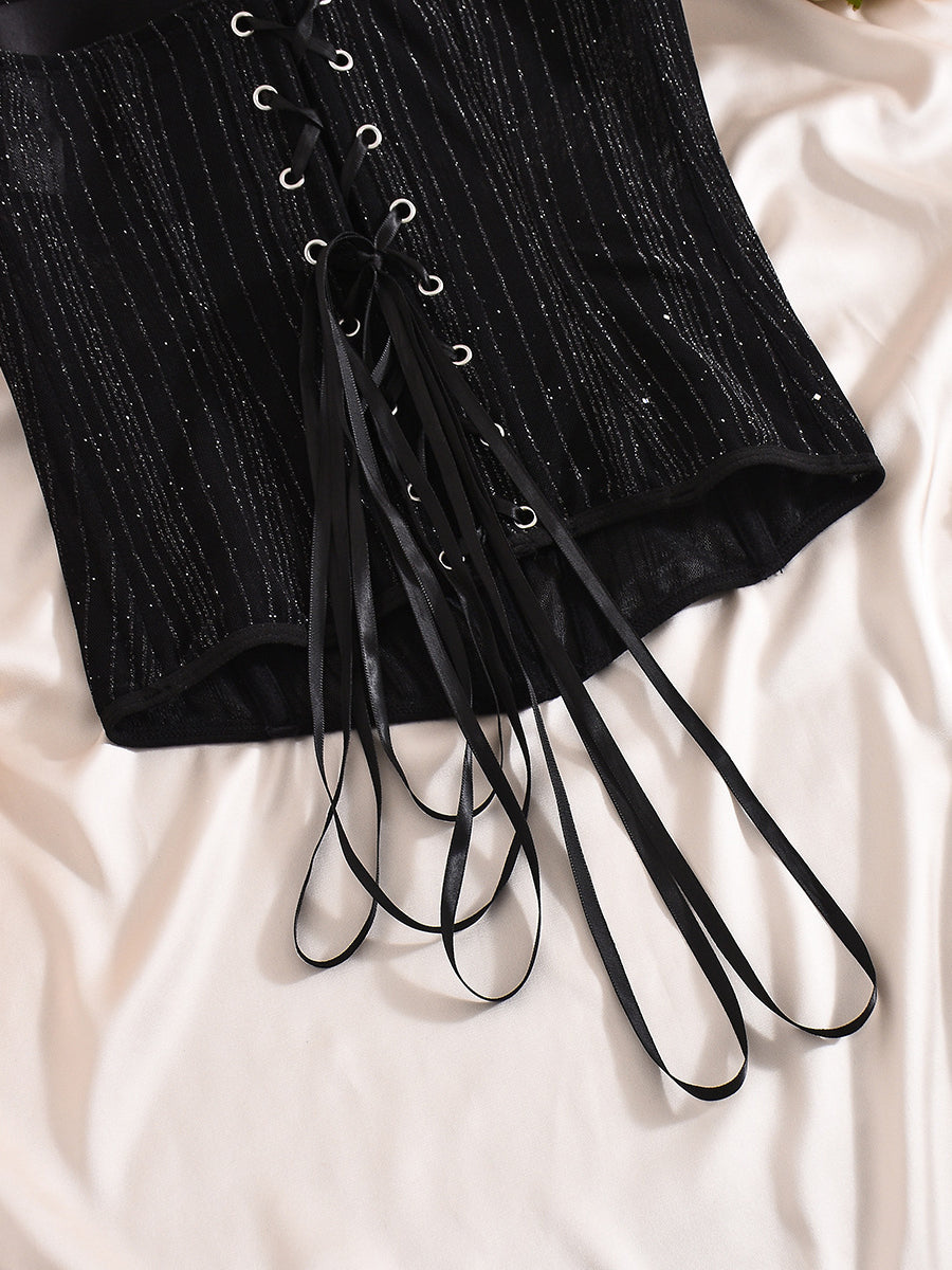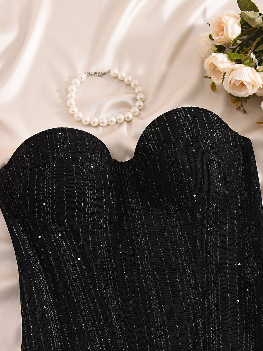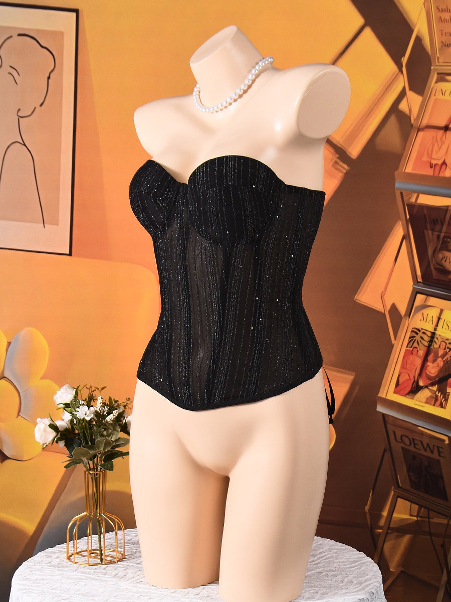 # Sexy Bandage Glitter Overbust Corset Tops Make a bold statement with this eye-catching overbust corset top featuring shimmering glitter accents and strategic bandage detailing. The structured design provides confident support while the sparkle adds glamour to any outfit. Perfect for nights out, performances, or fashion-forward styling. The fitted silhouette flatters curves and creates a striking look that commands attention. Ideal for retailers seeking trendy, statement-making pieces that appeal to customers who love bold fashion choices.