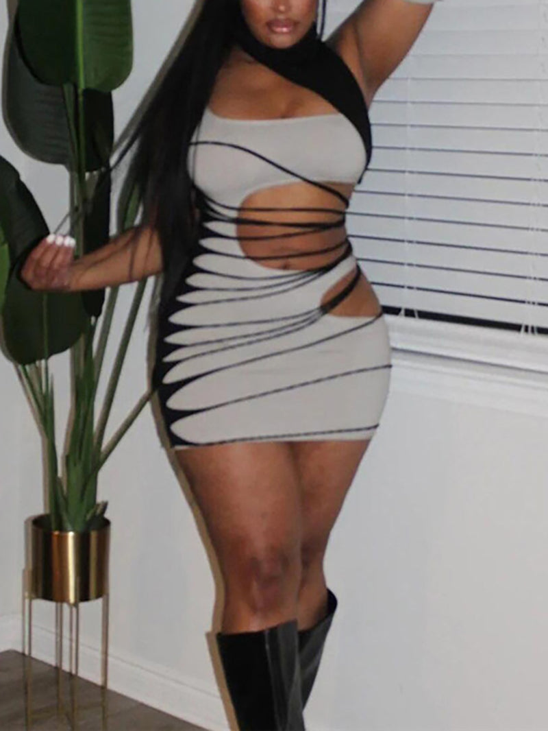 Introducing our Sexy Hollow Out One Sleeve Package Hip Mini Dress. This dress is crafted with a unique design that will enhance your figure and highlight your curves. Made with high-quality materials, this dress offers both style and affordability. Perfect for retailers looking to increase profits and offer the best value to customers.