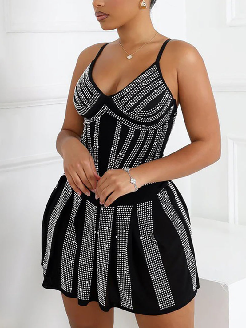 # Sexy Mesh Rhinestone Pleated Mini Dress Elevate your inventory with this stunning mesh mini dress featuring intricate rhinestone embellishments and elegant pleated detailing. The sheer mesh construction creates a sophisticated, eye-catching silhouette perfect for evening wear and special occasions. Rhinestone accents add glamorous sparkle and premium appeal, while the pleated design offers flattering movement and dimension. Ideal for retailers targeting fashion-forward customers seeking statement pieces. Available for wholesale orders with competitive bulk pricing.