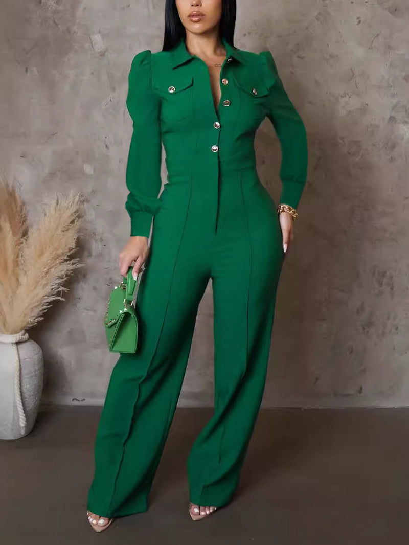 Upgrade your professional wardrobe with our Turndown Collar Office Wide Leg Jumpsuit. The perfect blend of style and affordability, this jumpsuit features a classic turndown collar and wide leg design for a sophisticated look. Elevate your office attire with this high-value piece.