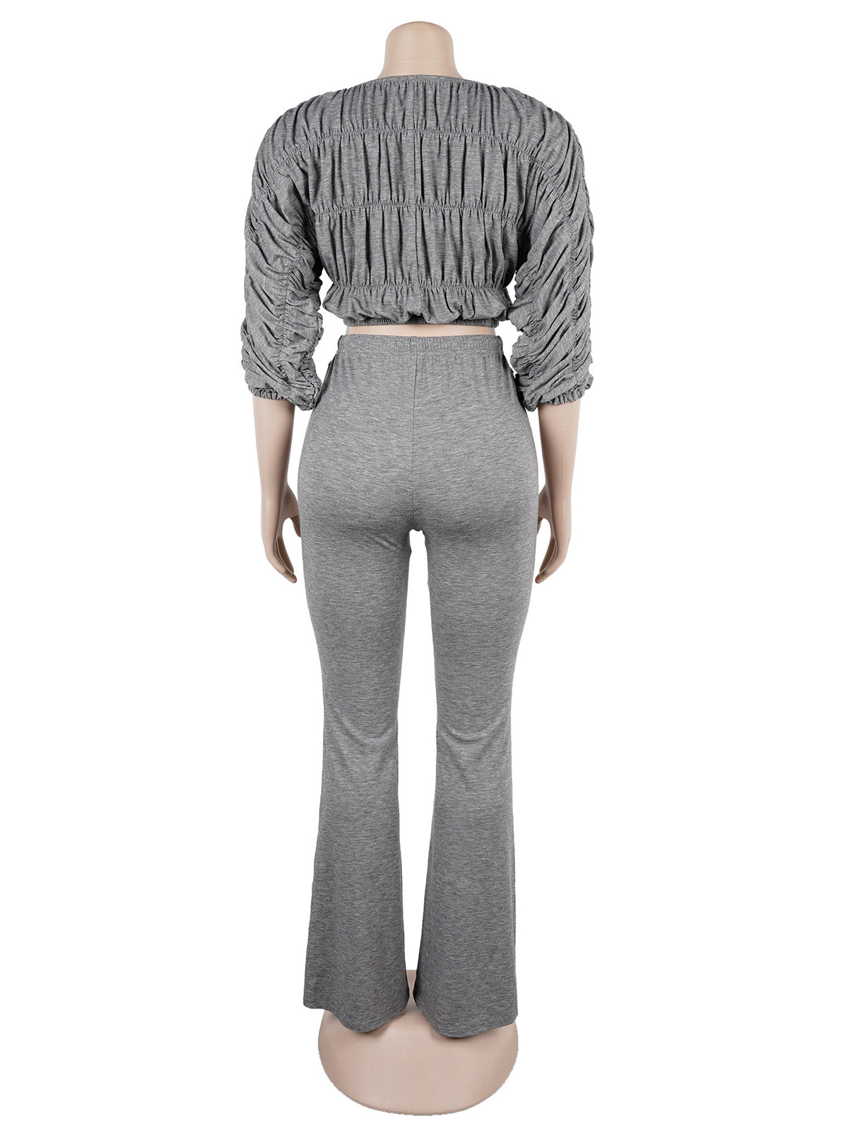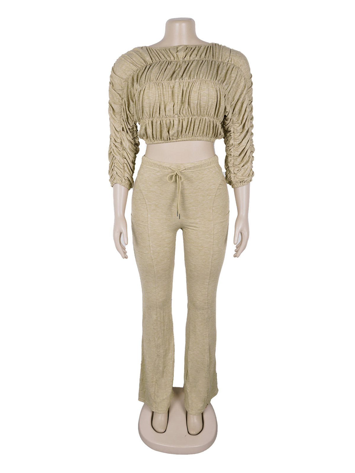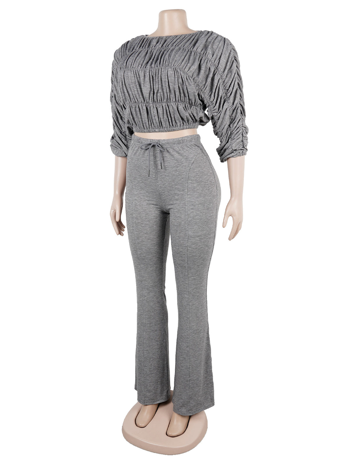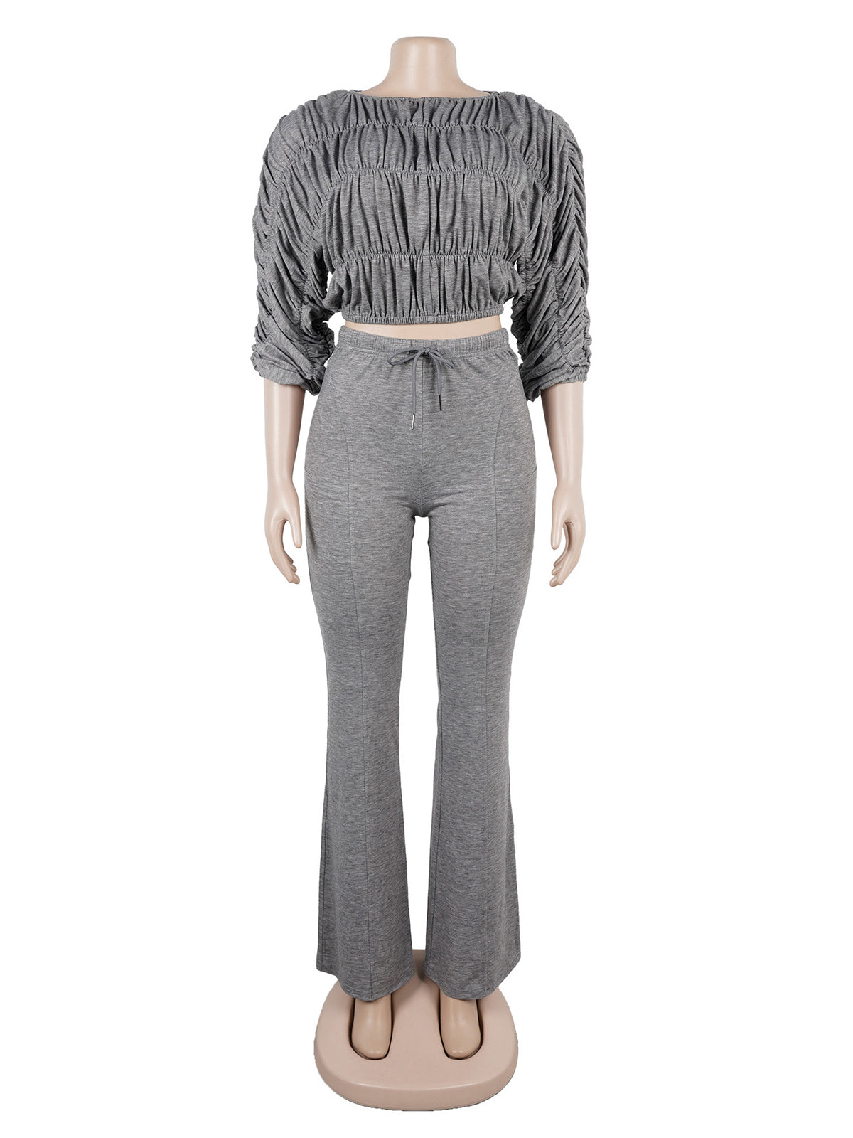 Casual Off Shoulder Pleated Crop Top Two Piece Sets