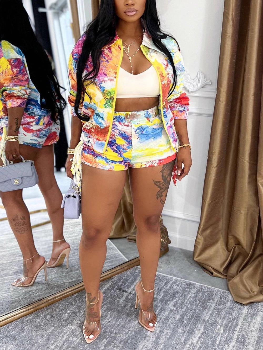 # Casual Print Zipper Top And Shorts Two Piece Set This versatile two-piece set combines comfort with contemporary style, featuring a casual printed zipper top paired with matching shorts. The relaxed fit and quality construction make it ideal for everyday wear, casual outings, or loungewear. The coordinated print design creates a cohesive look while allowing for easy mixing with other wardrobe pieces. Perfect for retailers seeking affordable, on-trend basics that appeal to style-conscious customers looking for comfortable, coordinated sets at competitive wholesale prices.