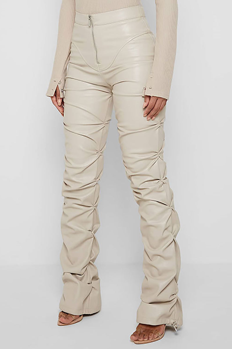 Get the best value with our Casual PU Leather Ruched Pants. The stylish ruched design creates a flattering fit for any occasion. Made with quality PU leather, these pants offer both style and affordability. Perfect for wholesalers.
